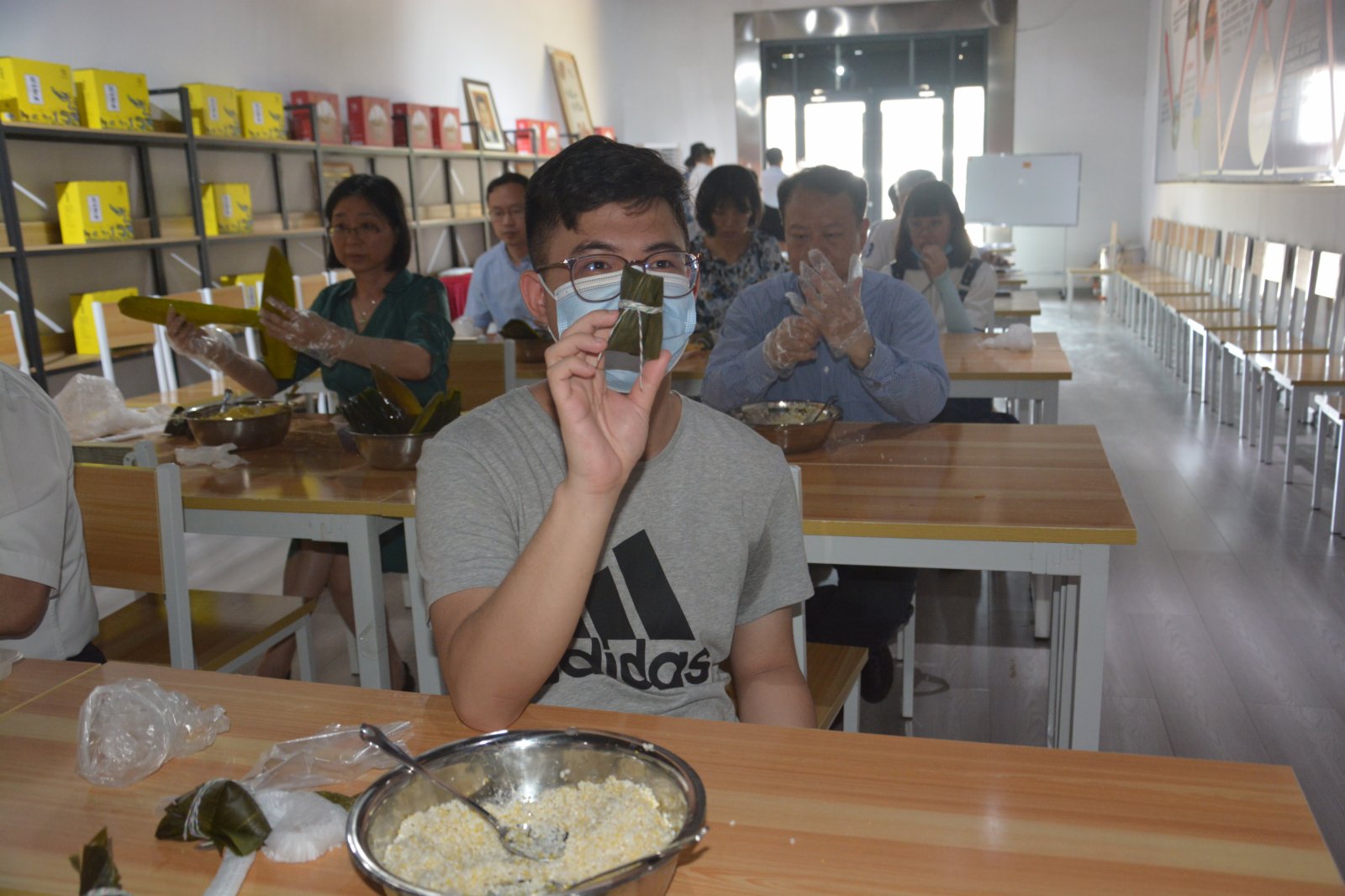 来自香港的太阳成集团tyc151cc历史文化学院历史系大三学生周泽众展示他包的粽子(受访者供图)