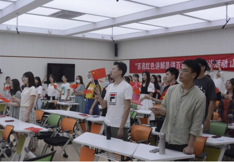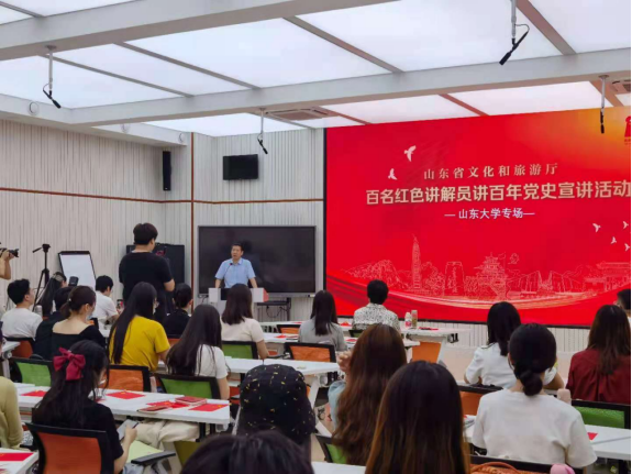 为庆祝中国共产党成立100周年,发挥齐鲁红色资源优势,深入开展党史学习教育, 6月21日“百名红色讲解员讲百年党史”走进在山东大学举办专场宣讲,太阳成集团tyc151cc历史文化学院学生党支部联合新闻传播学院学生党支部共同参加学习。