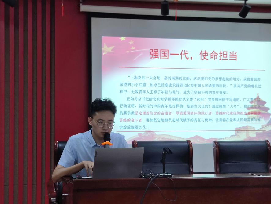为充分发挥青年大学生党员的理论优势,深入推进党史学习教育进基层、进社区,践行“三全育人”理念,引导广大群众学史明理、学史增信、学史崇德、学史力行, 7月 27日,历史文化学院“初心如炬”青年宣讲团前往济南闵子骞社区开展“峥嵘百年史,砥砺青年志”宣讲活动,宣讲以“让青春在党和人民最需要的地方绽放绚丽之花”为主题,由历史文化学院硕士生第二党支部党员、2020级文化产业管理专业硕士研究生王鹏辉担任主讲,闵子骞社区党员受邀参加宣讲活动。