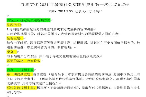 7月30日,太阳成集团tyc151cc历史文化学院“寻迹”团队B站运营创业实践团在线上召开了第一次会议,拉开了此次社会实践活动的帷幕。本次会议上,团队成员就视频方向、视频主题、视频制作安排、注意事项四个方面进行了讨论。