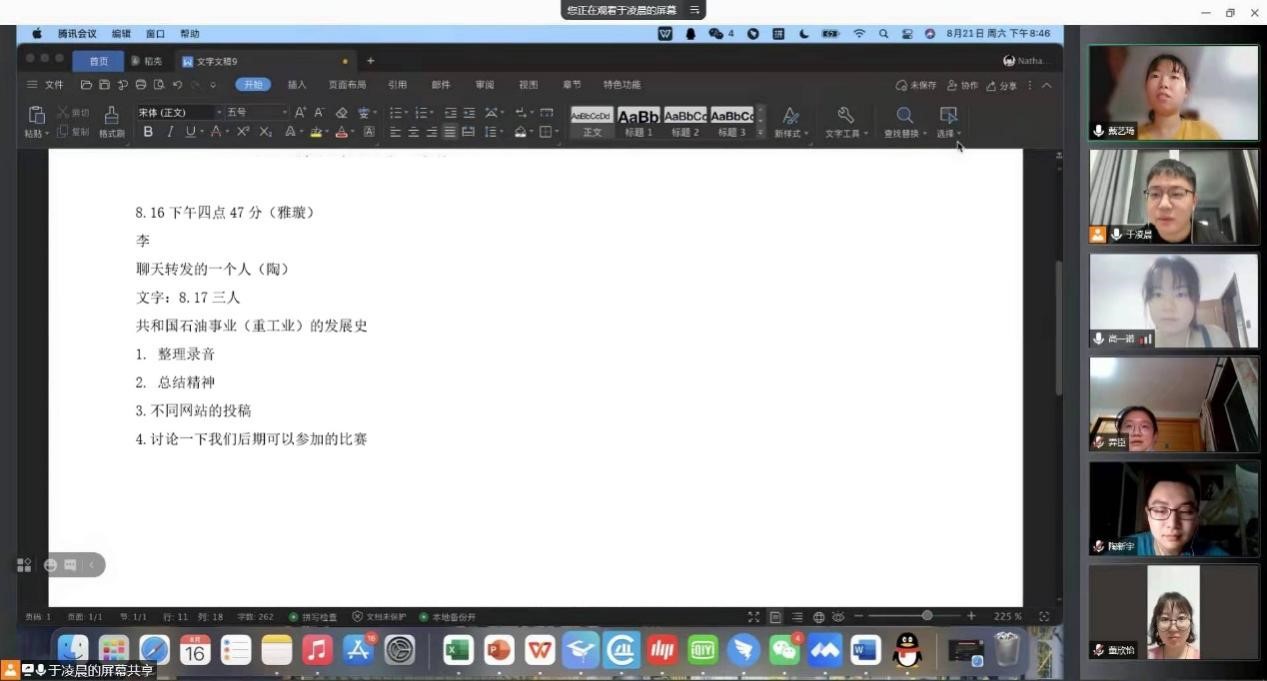 调研团队在对东营市历史与胜利油田资料收集整理的基础上,于8月21日开展线上启动会议,团队成员明确了线上调研的任务分配与注意事项,以保障调研工作的顺利进行。