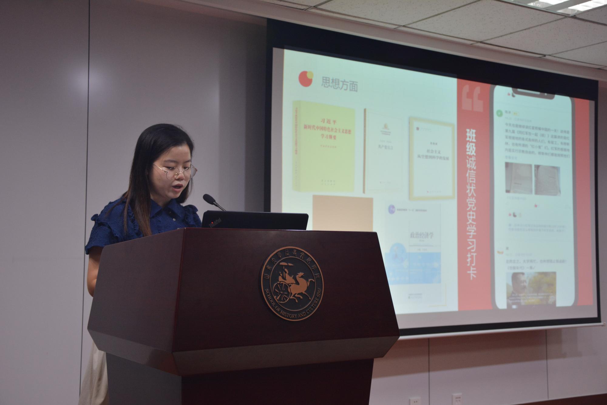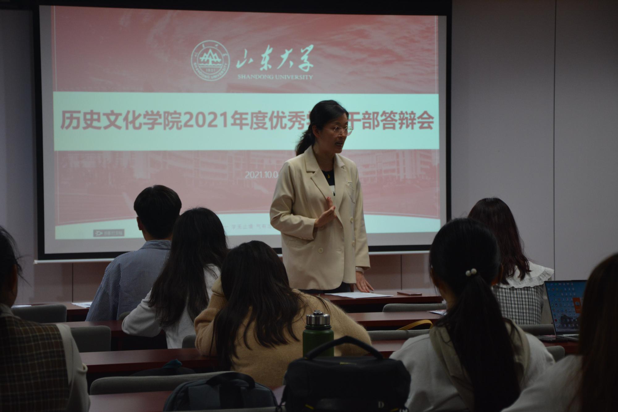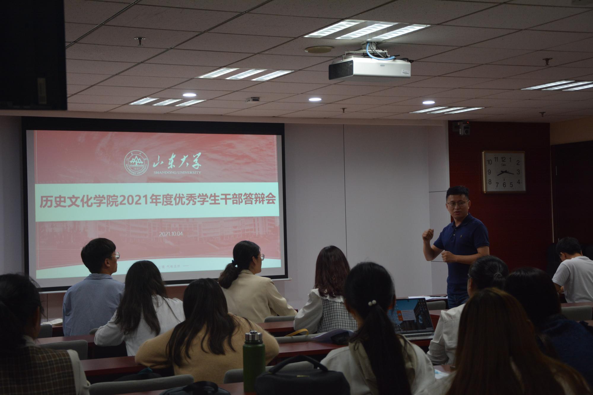 为充分发挥学生干部示范引领作用,扎实推动学院“三全育人”工作,10月4日,历史文化学院2021年度优秀学生干部答辩会在知新楼A1017举行。学院副处级辅导员李一楠老师,历史学系孔勇老师,文化产业管理学系章军杰老师,辅导员李虎、朱嘉铭、赵显锋担任评委。2021级全体本科生班委参加答辩会。