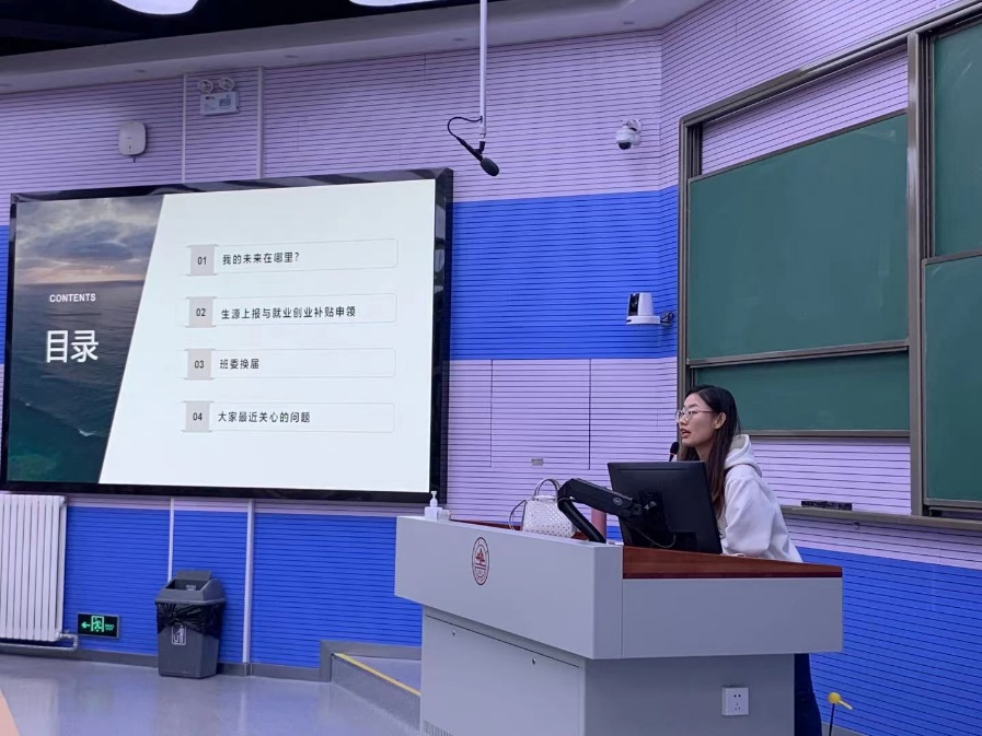 会上,2018级辅导员朱嘉铭就“我的未来在哪里”这一话题展开。她针对毕业年级的特点,把大家的未来规划分为:已保研、考研、就业和出国四类,并针对“我想要的未来是什么”和“如何抵达想要的未来”进行分析。她详细梳理了2017级毕业生的考研及就业数据,用真实数据提醒规划考研的同学合理安排时间,建立高效复习的考研复习时间表,放平心态全力冲刺。针对规划就业的同学,她提醒同学们积极参与秋季招聘高峰期,及时关注招聘信息,积极参加宣讲会,提升求职能力,拓宽职业发展渠道。针对同学们普遍存在的考研焦虑、就业焦虑问题,她梳理了具有代表性的企业、单位招聘信息,引导大家树立“两手都要抓”的意识,给自己的未来上“双保险”,考研复习之余抓住秋招黄金期,寻找符合个人特色的发展路径。