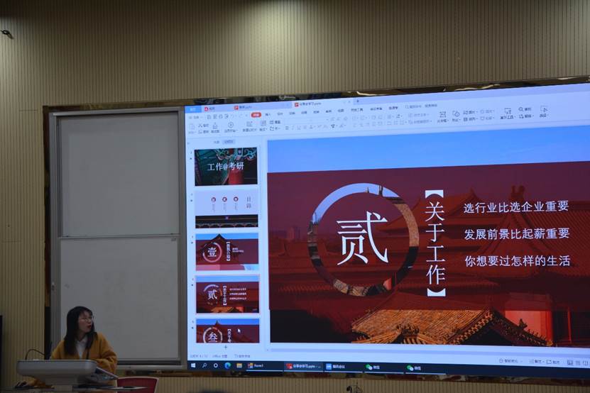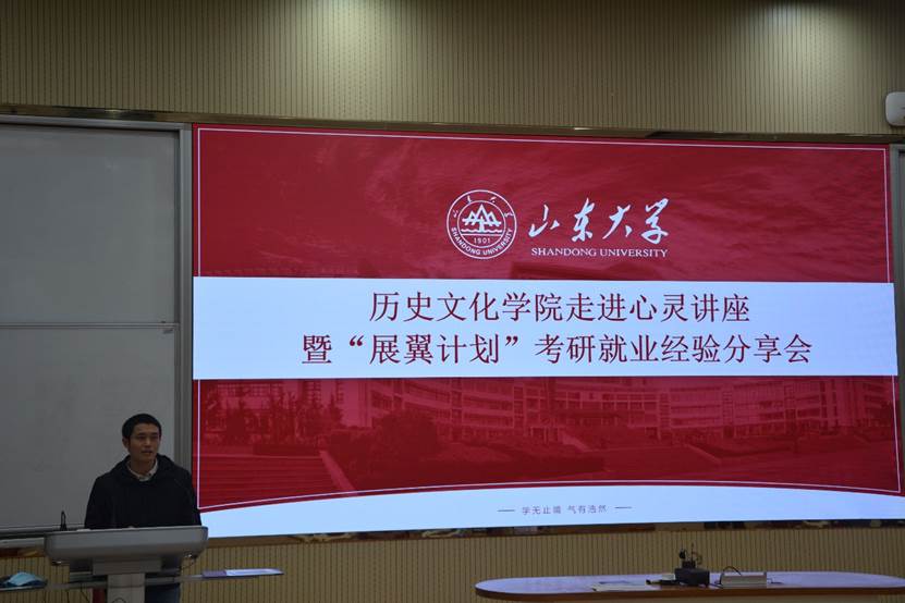 为解决大三学生普遍关注的考研工作问题,发挥朋辈辅导优势,扎实推进“三全育人”工作,10月23日,历史文化学院面向2019级本科生在电教北楼102教室举办走进心灵讲座暨“展翼计划”考研就业经验分享会,以“考研or工作——这是一个问题”为主题,分享会由2019级本科生辅导员赵显锋主持。