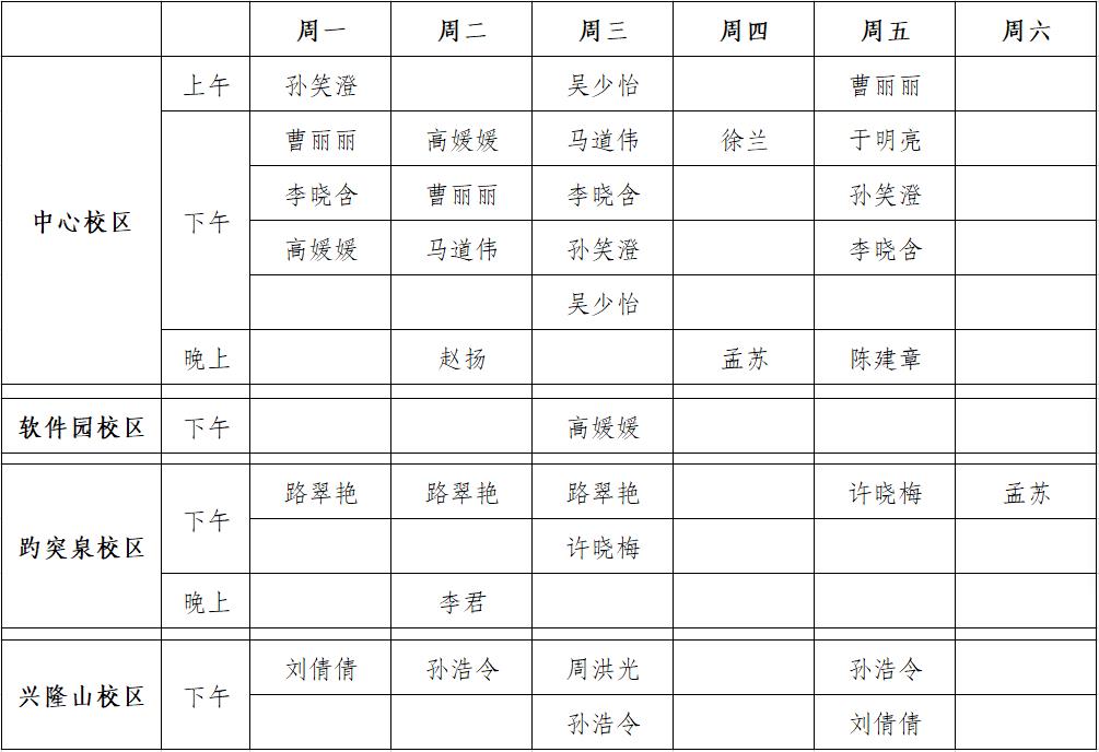 随着春季学期返校开学,心理中心本学期的咨询服务即日起投入运行。咨询时段安排可见下图,请有心理咨询需求的同学根据自己情况提早预约,以便有足够的时间完成资源匹配。