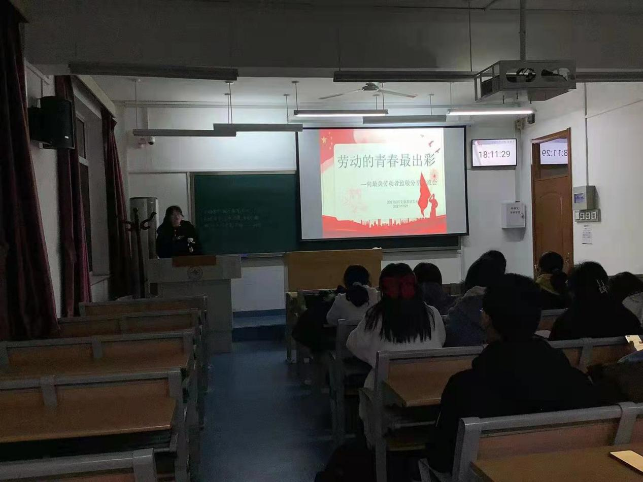 11月21日,为弘扬新时代劳动模范精神,激发同学们的劳动热情,支部于公教楼208室开展“劳动的青春最出彩”——向最美劳动者致敬分享会。在学习和交流中,同学们积极踊跃地分享了自己心中的劳动模范,并提出了自己对模范精神的认识。史戈向大家分享劳动精神践行模范——孟泰同志,并向大家讲述了其在鞍山钢铁厂工作过程中所经历的事迹,同学们纷纷表示,从这位“身不离劳动,心不离群众”的党员干部身上学习到勤劳、敬业、勤恳、奋斗的精神。