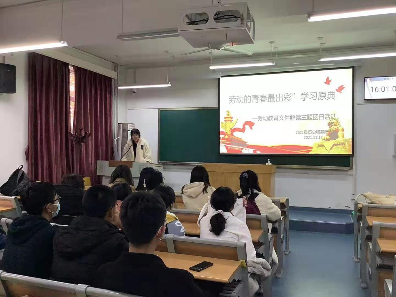 2021级“强基计划”团支部以理论联系实际,行动与知识相结合,开展了学习原典——劳动教育文件解读主题团课、劳动主题观影、最美劳动者事迹分享交流会、走进劳动教育一线四项活动,支部团员积极参与,收获颇多。