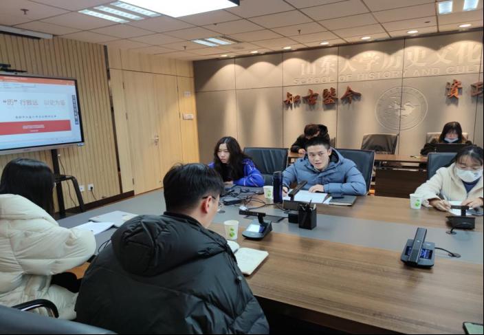 为引导青年学生深入学习贯彻党的十九届六中全会精神,坚定理想信念,增强青年斗志,践行“请党放心,强国有我”的铮铮誓言。1月6日,历史文化学院“初心如炬”研究生宣讲团联合“红色筑梦”本科生宣讲团展开“深入学习党的十九届六中全会精神”主题党日活动。活动由历史文化学院硕士第二党支部李玮涓和本科生党支部董诗妮担任主讲,历史文化学院硕士第二党支部副书记赵显锋担任主持,学院辅导员李虎参加活动并进行点评指导。