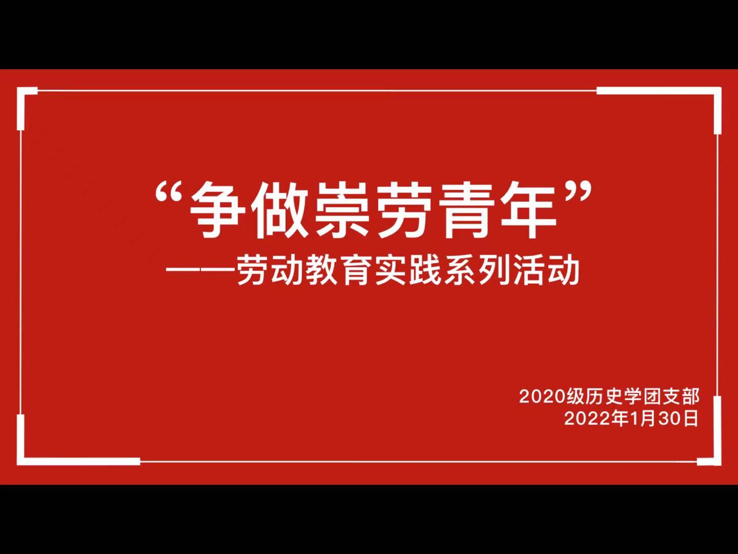 为落实《中共中央国务院关于全面加强新时代大中小学劳动教育的意见》精神,深化大学生思想政治教育的实践,历史文化学院2020级历史学团支部于寒假期间开展“争做崇劳青年”劳动教育实践系列活动。