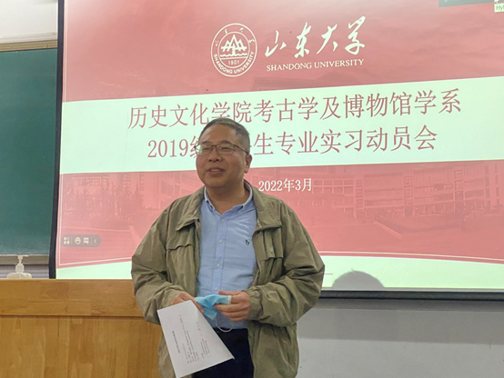 为确保考古学、文物与博物馆学专业本科生顺利开展田野实习, 3月10日下午,历史文化学院考古学及博物馆学系于公教楼103教室开展2019级本科生专业实习动员会。历史文化学院院长方辉、副院长王芬、副处级辅导员李一楠出席,会议由考古学及博物馆学系主任唐仲明主持,宋艳波、路国权、申静怡等教师参加动员会。