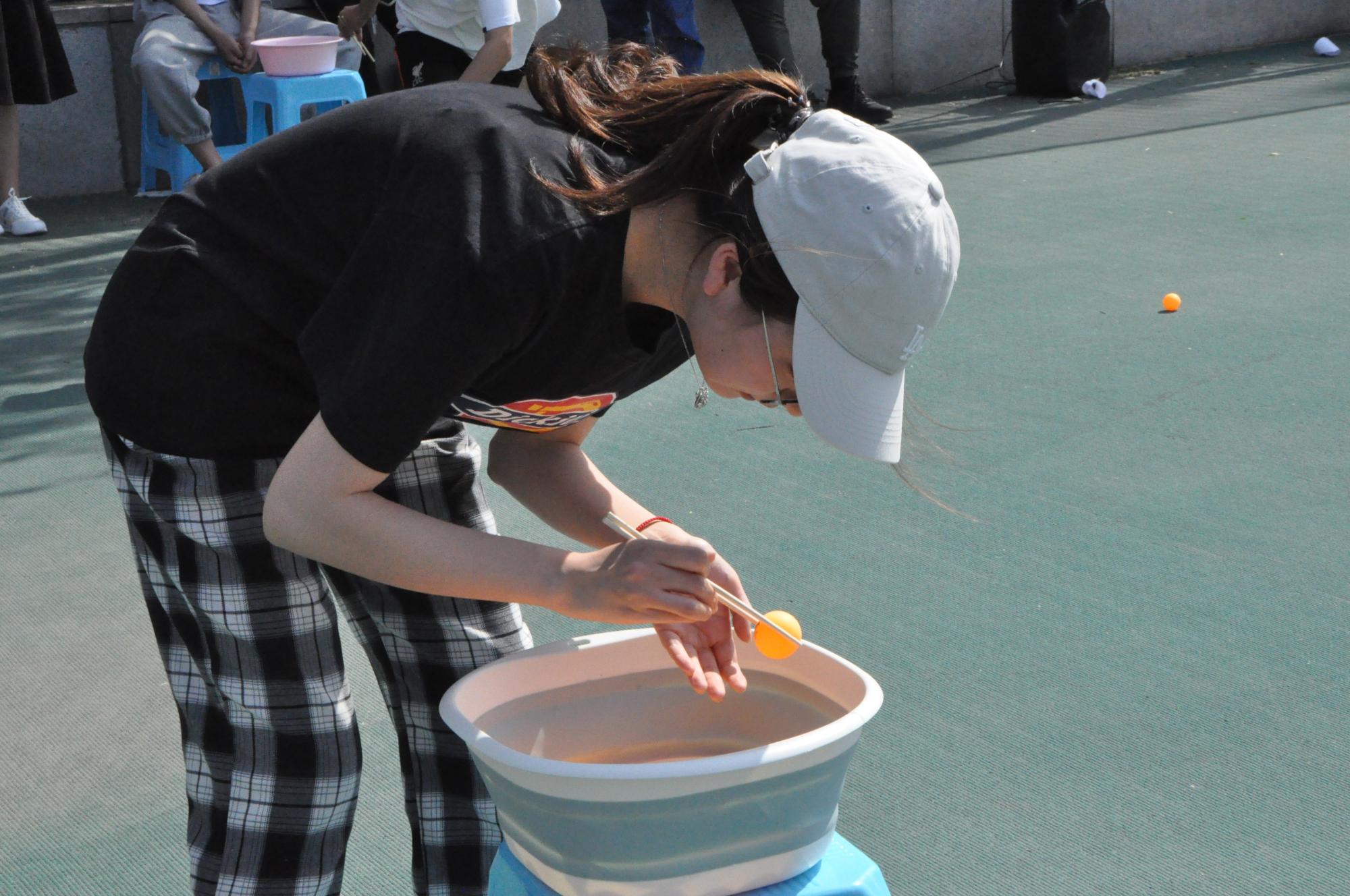 本次运动会在严格遵守疫情防控要求下开展,项目多样,各具趣味,包括套圈、跳大绳、接力运球、不倒丛林、快乐保龄球、摸石过河、投壶、筷传乒乓球共八个项目。在志愿者的热情引导下,老师和同学们有序参加了本次比赛。
