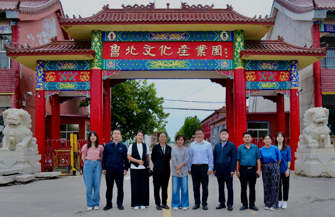 随后,实践团队前往阳信县参观省级现代农业产业园,该园内集聚规模以上养殖企业百余家,年屠宰加工牛肉位列全国县域第一。在此基础上,园区依托第一产业建设华阳民俗文化产业园,通过挖掘古典民俗文化、鲁绣、鼓子秧歌和牛骨雕刻等本地特色文化资源,形成了牛骨雕刻、牛骨瓷绘、牛毫毛笔、羊绒艺品等文化产品,有效延长产业链条,推动农文旅融合发展。目前,园区已形成涵盖古家具收藏、制作、展销,古玩字画收藏、展览,图书制品销售等类型的文化产业体系。