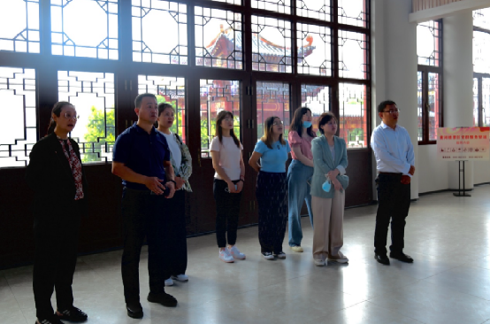 接着,实践团队来到形成于商周时期的无棣古城,实地考察古城五大功能区。据介绍,当前古城在业态布局上,突出沉浸式体验,入驻展销十里香、海瓷、盐雕等特色产业以及绒绣、泥陶等十大“非遗工坊”;在发展路径上,实施文化活动进古城工程,并有序推进古城博物馆布展、城市书屋、非遗一条街等项目。团队成员就如何提升古城文旅产业聚集效应和旅游品牌知名度进行讨论,指出目前古城发展存在未形成密切关联的文旅产业链条、文旅龙头项目动力不足、品牌知名度和影响力较低等问题,下一步应从优化古城业态配置、提振夜经济消费、强化线上宣传营销等方面推动古城文旅产业发展。实践团队还重点参观了《历代黄河舆图展》,展览用大量历史图片、资料、实物等详细介绍了黄河流域、黄河古道的历史变迁,讲述了滨州人民治理黄河、利用黄河的历史故事,以及“勇往直前、百折不挠”的黄河精神。