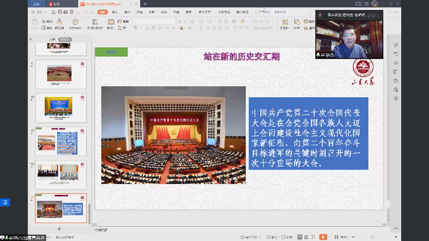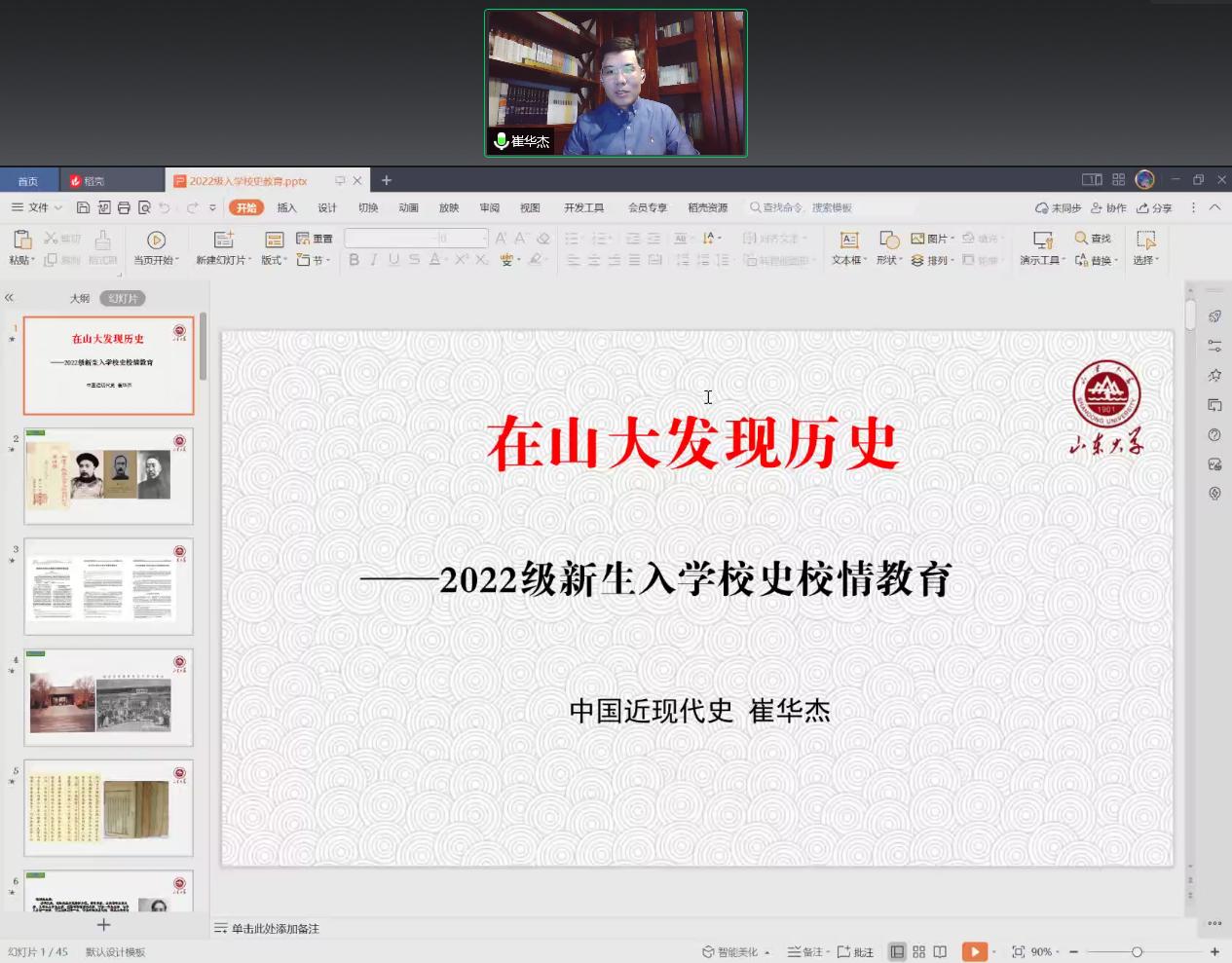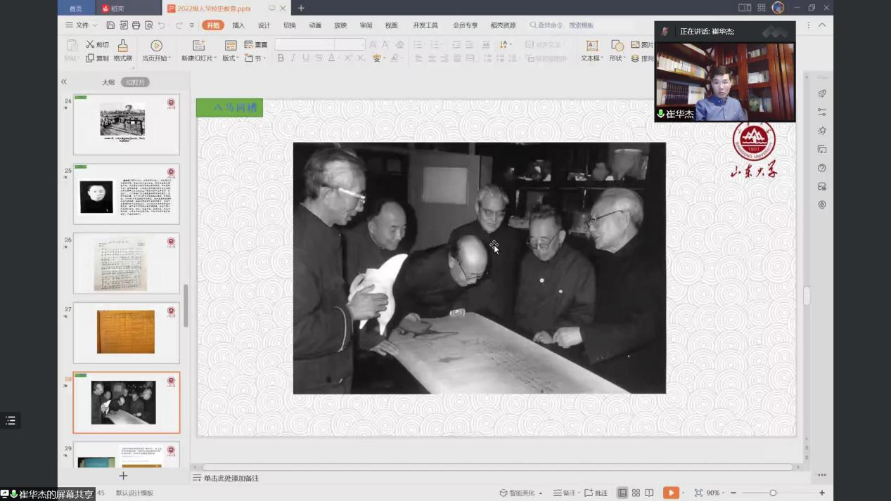 为增强新生对学校、学院的认同感和归属感,历史文化学院面向2022级新生开展线上校史院情教育,历史文化学院历史学系崔华杰副教授受邀主讲,会议由学院研究生辅导员曹明明主持,学院全体2022级新生在线听会。