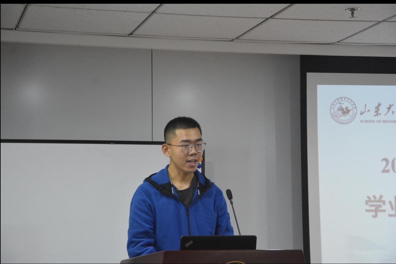 丁晨楠作为学业导师代表发言,鼓励同学们在史学研究的道路上行稳致远,并对同学们的学习提出了三点具体建议:一是要在学好英语的同时多去掌握几门语言;二是要多读跨学科跨时段跨国别的书籍,开阔视野,增长见识;三是要关注数字人文,掌握各种数据库资源的使用方法。