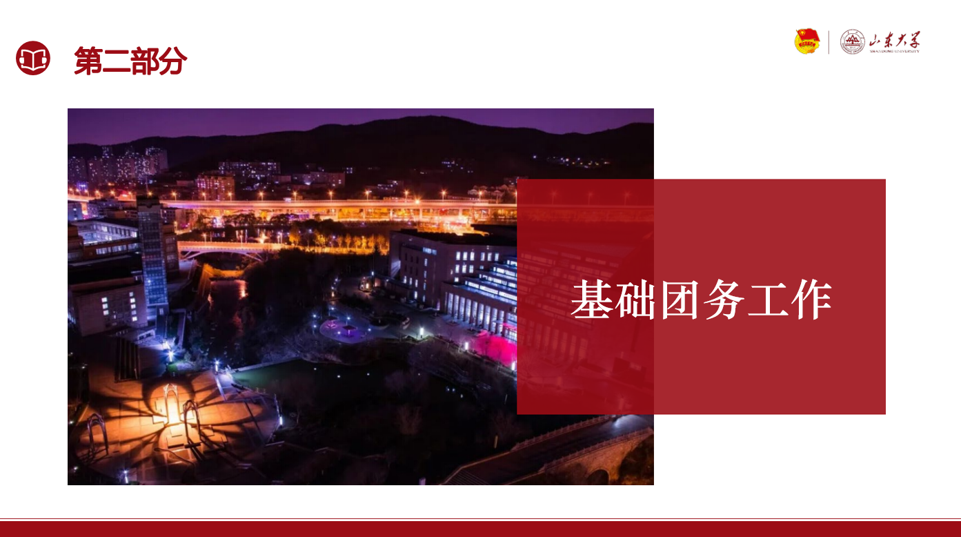 会议第二部分为同学们细致梳理了基础团务工作。基础团务包含五项重点工作,分别是团组织隶属关系梳理,落实团组织按期换届要求,落实基层团组织“三会两制一课"制度,规范团员发展与管理工作,规范团费收缴、使用和管理工作。基础团务工作是共青团保持和增强政治性、先进性、群众性的必然要求,是推进团要管团、从严治团的重要载体,是加强团员思想政治教育和自我教育、强化团员意识、提升基层团组织凝聚力和吸引力的制度保障。