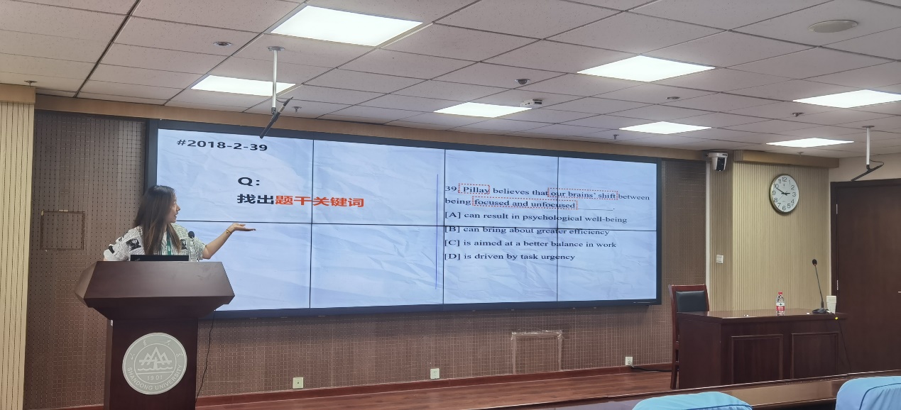 随后,张雨萌结合部分考研英语阅读真题为同学们进行具体解题思路和方法的讲解,为同学们在作答英语阅读题时更快更准地抓住关键信息,推测单词词义等提供帮助。