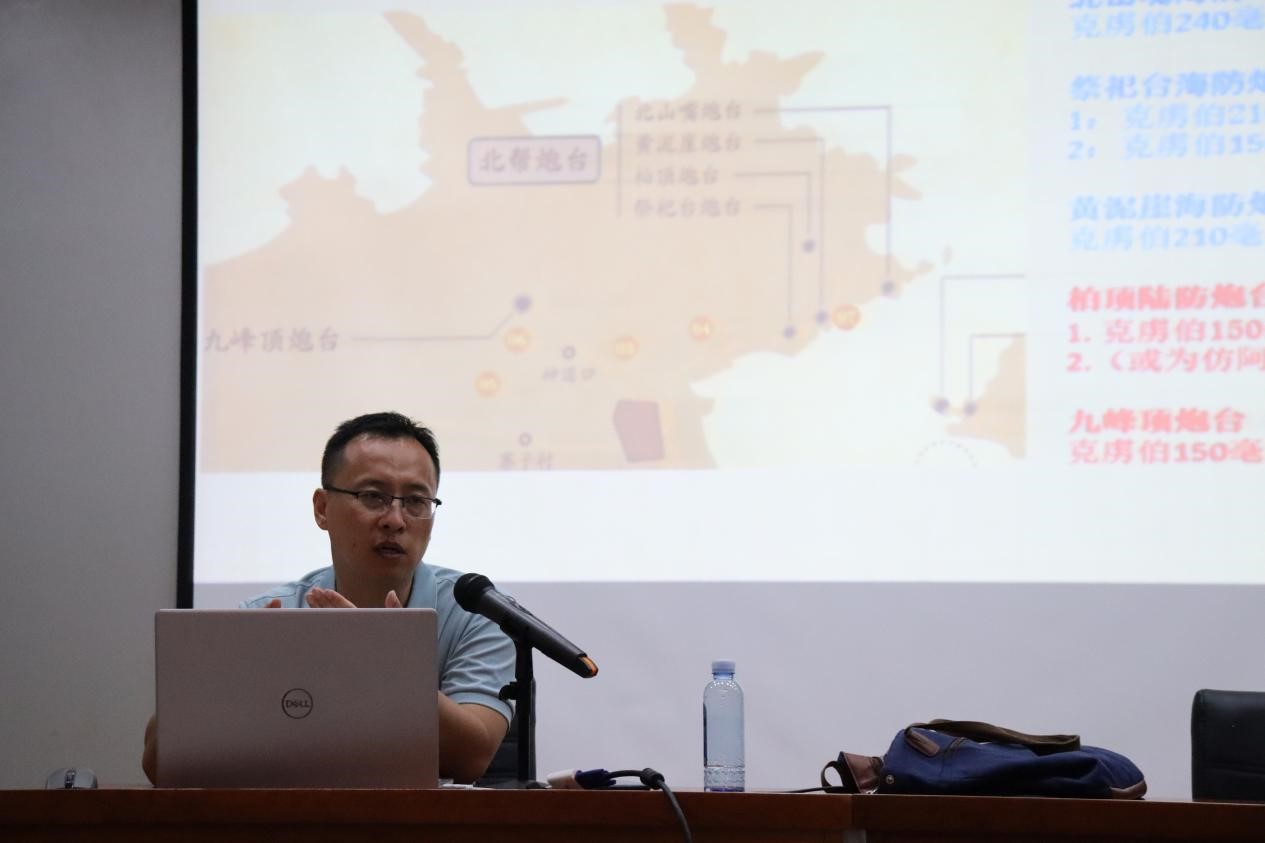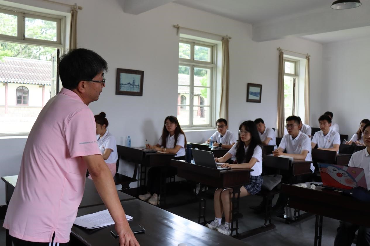 在专题授课环节,中国甲午战争博物院孙建军教授在水师学堂旧址进行了现场授课,引导学生在水师学堂旧址上发现问题、提出问题并探索解决问题,同学们通过实地深入考察,积极思考,感悟良多。隋东升教授对北洋海军威海基地防务设置进行了详尽介绍,进一步加深了学生对甲午战争与近现代中国海防的全面了解,激发了研究志趣。