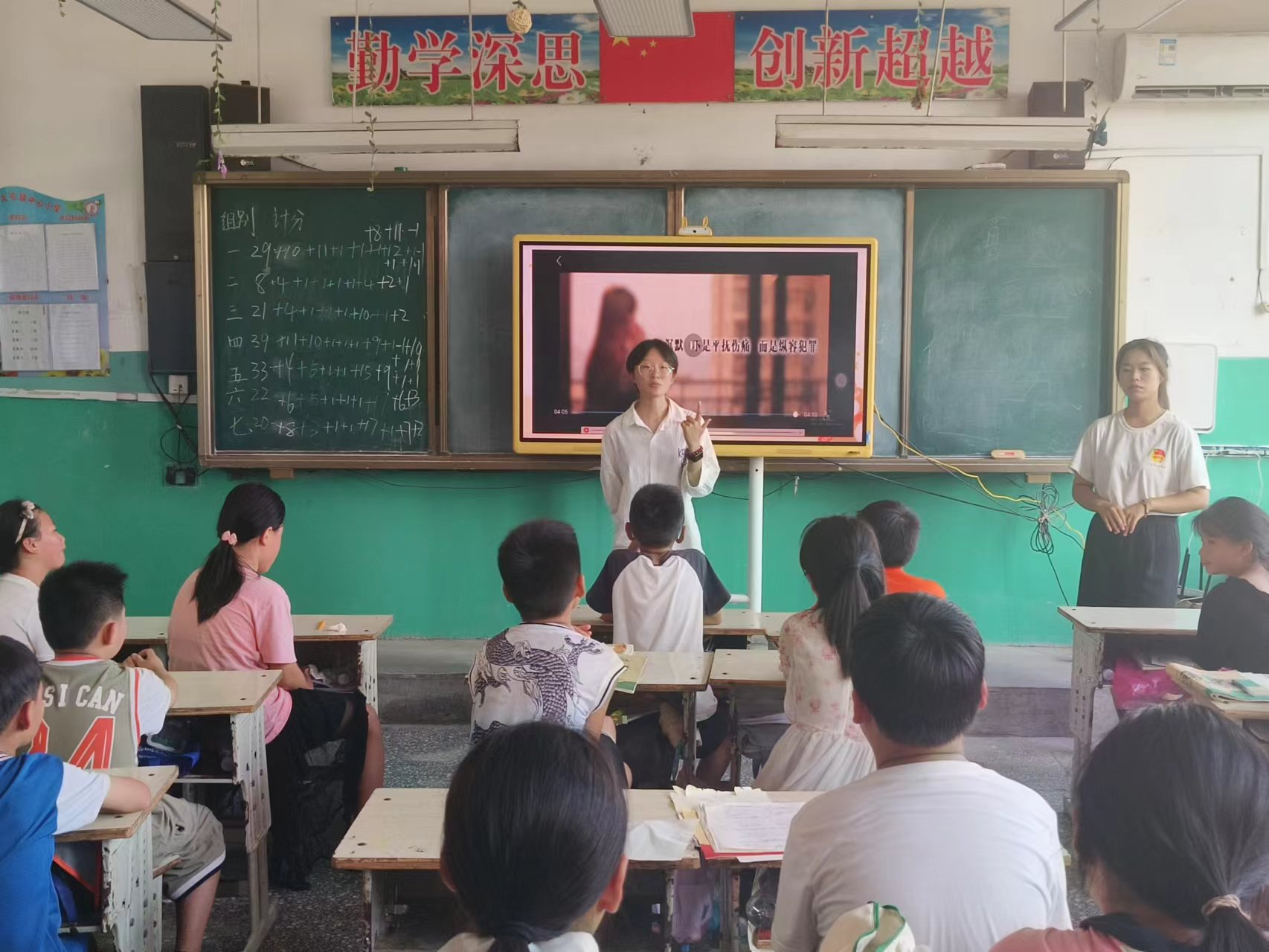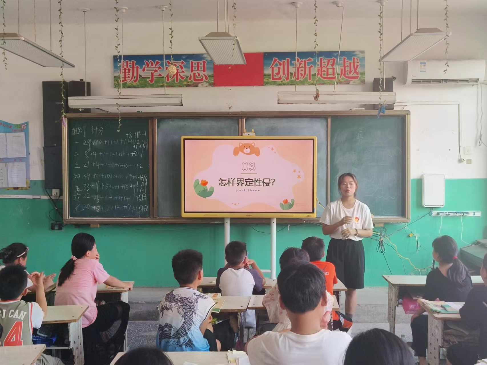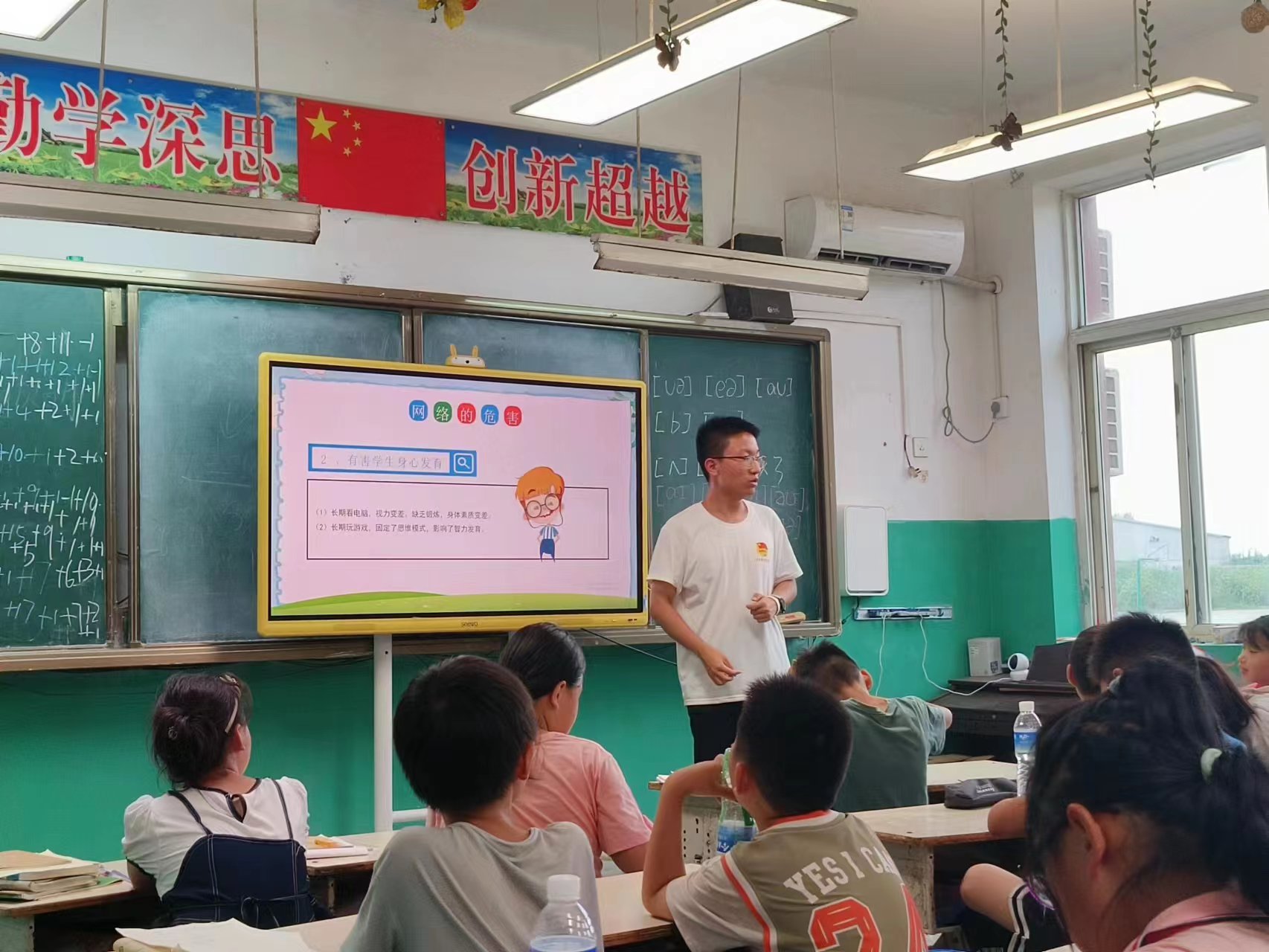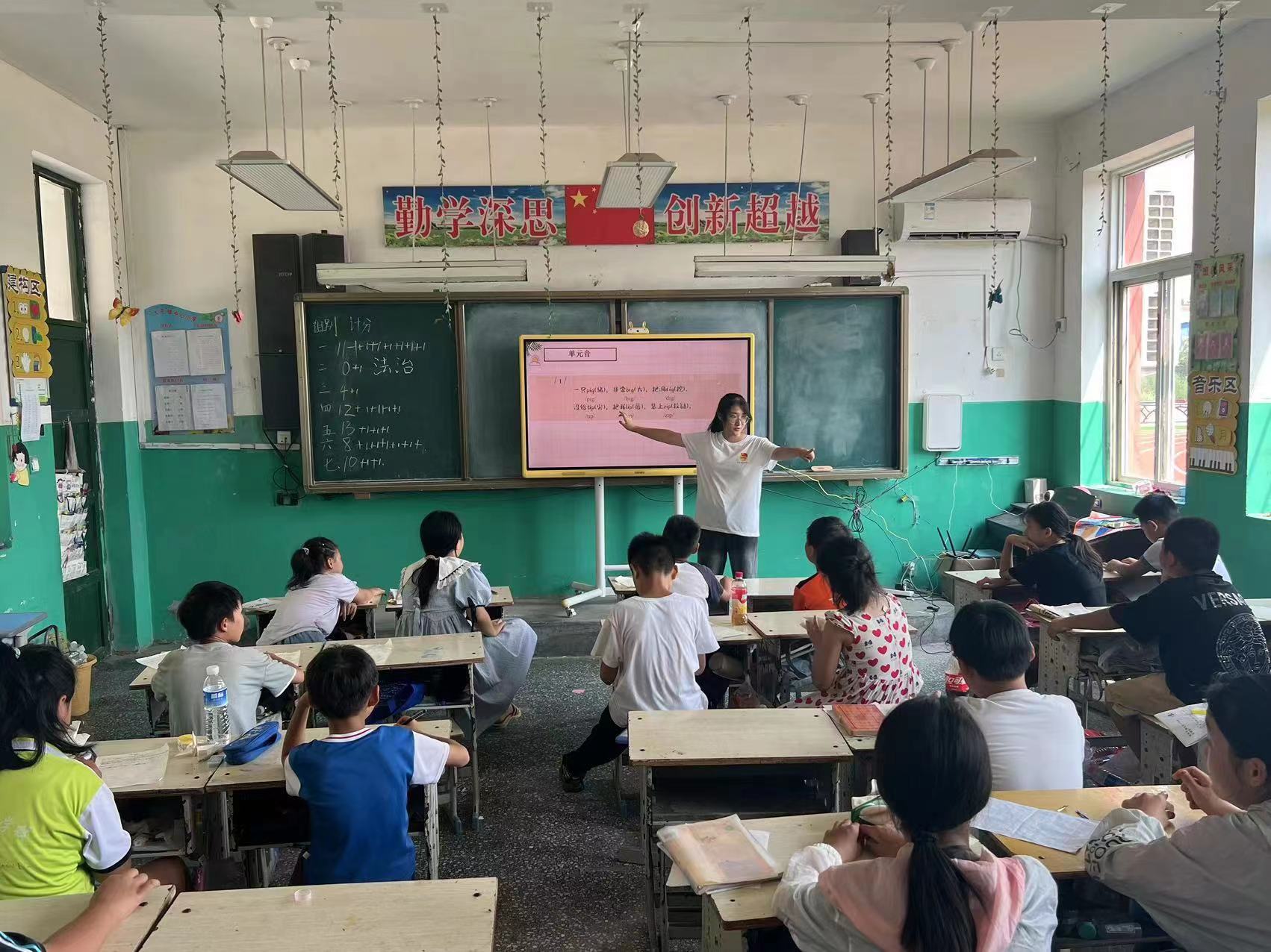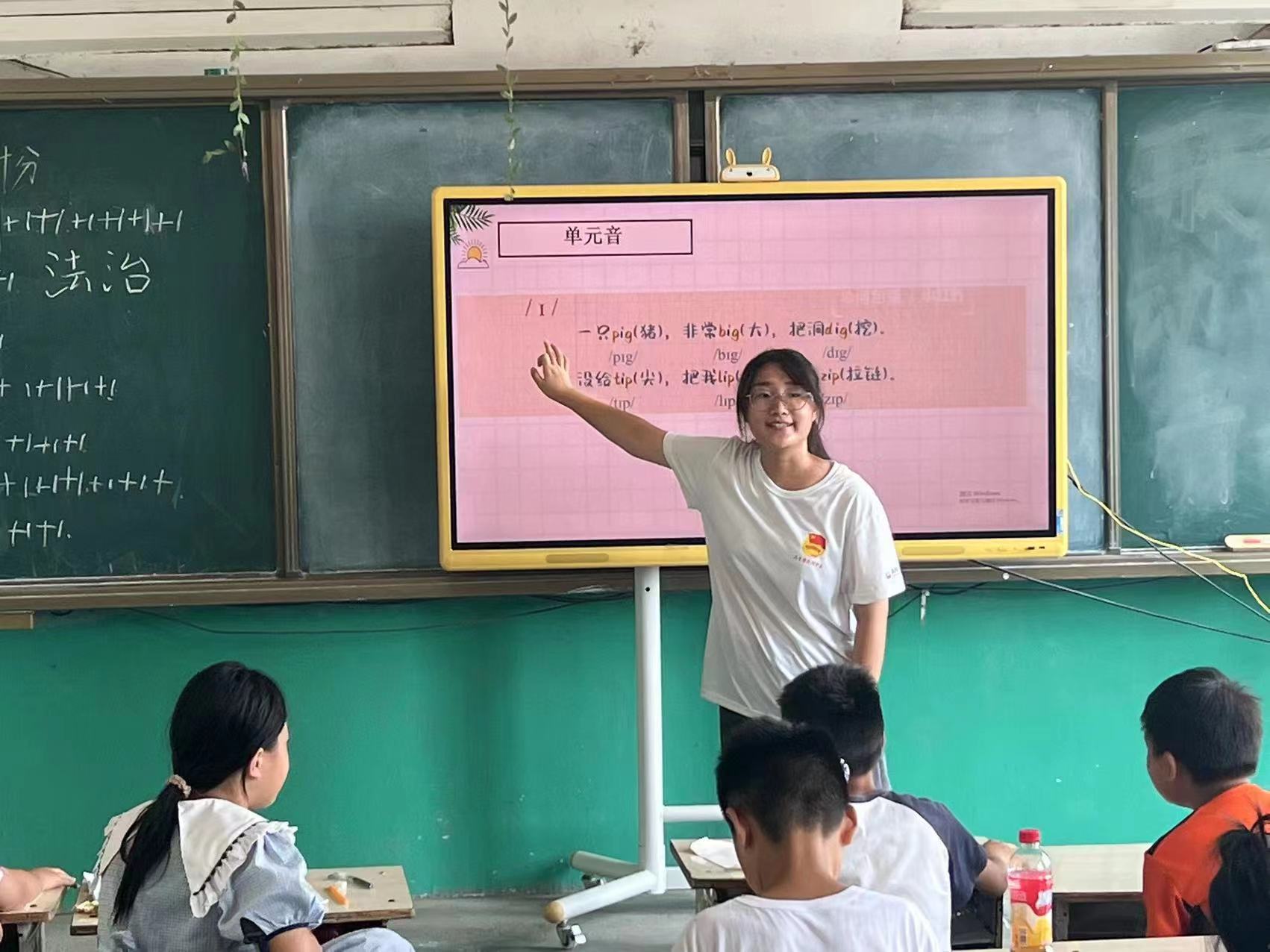 下午的第二节课英语音标课由闫舒同学带来。闫老师们带着孩子们一起发音朗读英文音标和单词,通过一些具体情境的设置,让孩子们在读懂音标的过程中,进一步增强孩子们的语感,提升对英语学科的热情。