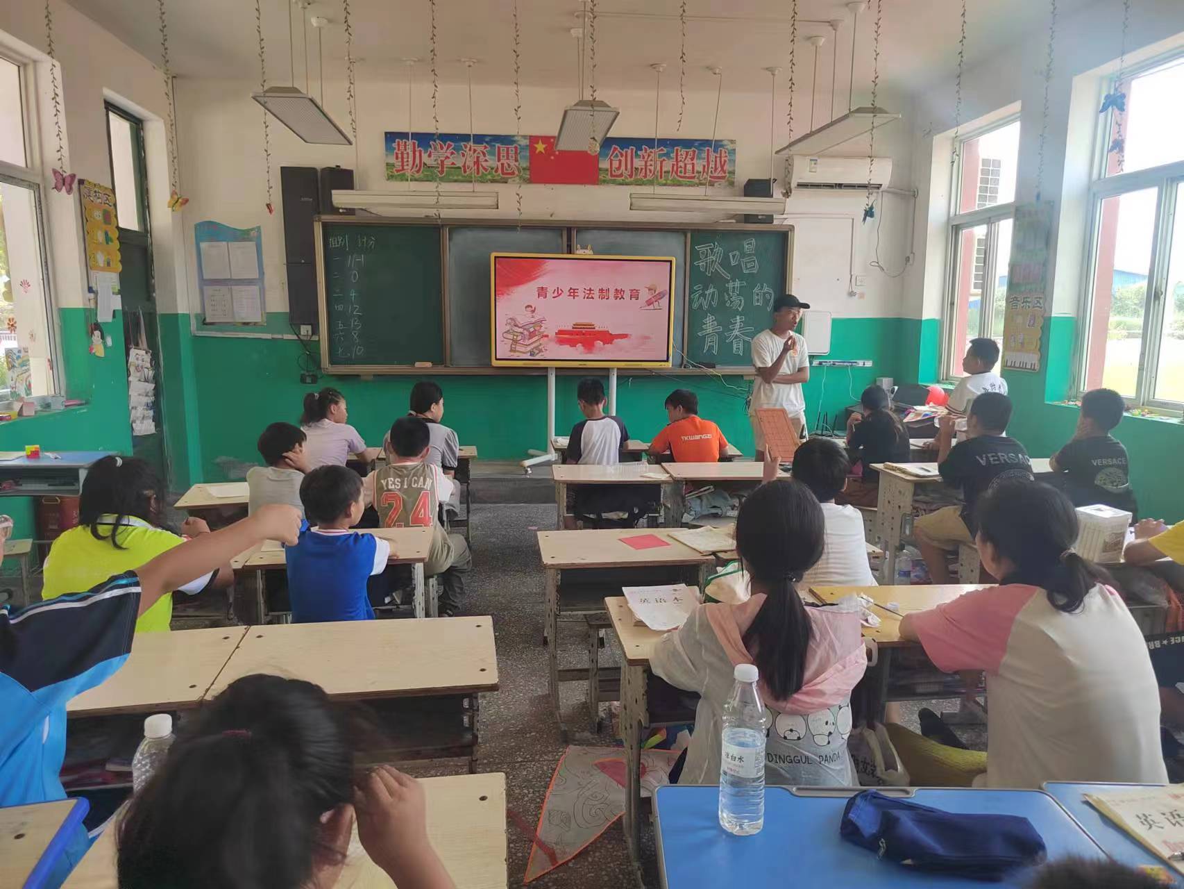 早上9点,第一节法制安全教育课开课,授课老师为苏立朋同学。他授课的主题是青少年法制安全教育,在本节课中,老师首先强调了法的概念,并着重突出了未成年人保护法对孩子们的重要意义。随后,老师,又列举了一些社会上的不良行为以及一些严重的社会违纪行为,让孩子们都加以警惕,加以预防。除此之外,老师还提出了打架斗殴和盗窃这两点在学校较为常见的不良恶习,通过让孩子们发表自己的观点和自己遇到这种情况下的解决措施,发现了孩子们都有较强的处理相关问题的能力,在此基础上,老师又给孩子们普及了毒品的种类和危害,让孩子们都能懂得拒绝毒品,杜绝诱惑,学会做一个健康守法的小青年。