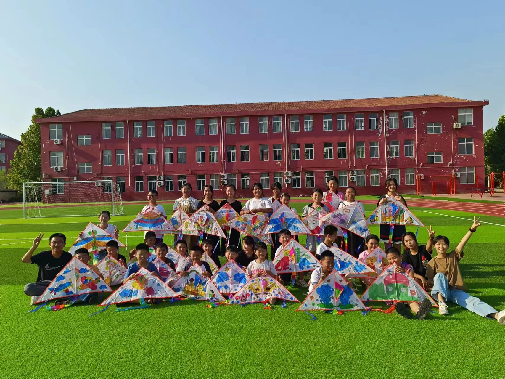 上午的第二节课是由刘贝贝同学带来的制作风筝的手工课。刘贝贝同学首先跟孩子们强调了如何制作风筝,又分发给每位孩子一个风筝和一份颜料,并让孩子们在风筝上写上了自己的名字和梦想,后让孩子们自行制作不同特色的风筝,最后带孩子们到室外开展放风筝活动,无数五彩斑斓的风筝在湛蓝的天空上飘舞着,这寓意着孩子们的梦想终将实现,都能随风筝一样飞向远方,飞向美好未来!