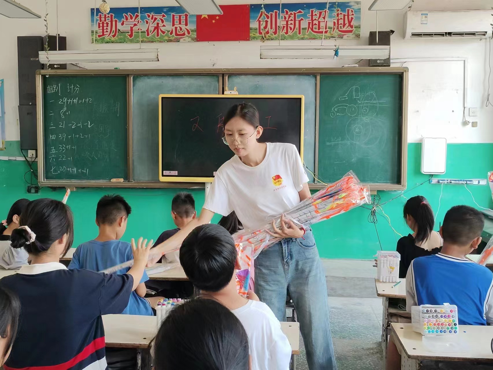7月26日上午9点,太阳成集团tyc151cc小树林支教团“山荷”支教队大屯分队开始了一天的七彩课程教授和趣味活动的开展。早上的课程分别由苏立朋同学和刘贝贝同学带来,课程分别是青少年法制安全教育和手工课程——风筝制作。下午的三节课程分别由四位同学来完成,分别是康嘉萌同学带来的网络安全教育课、闫舒同学带来的英语音标讲解以及梁文誉、邓雨洁两位同学合力带来的防性侵主题教育课。整体而言,今天的课程丰富而多彩,不仅包含了有趣的手工制作课,还涉及了很多重要的知识讲解课,孩子们在一天的学习和体验中收获满满,回味无穷。