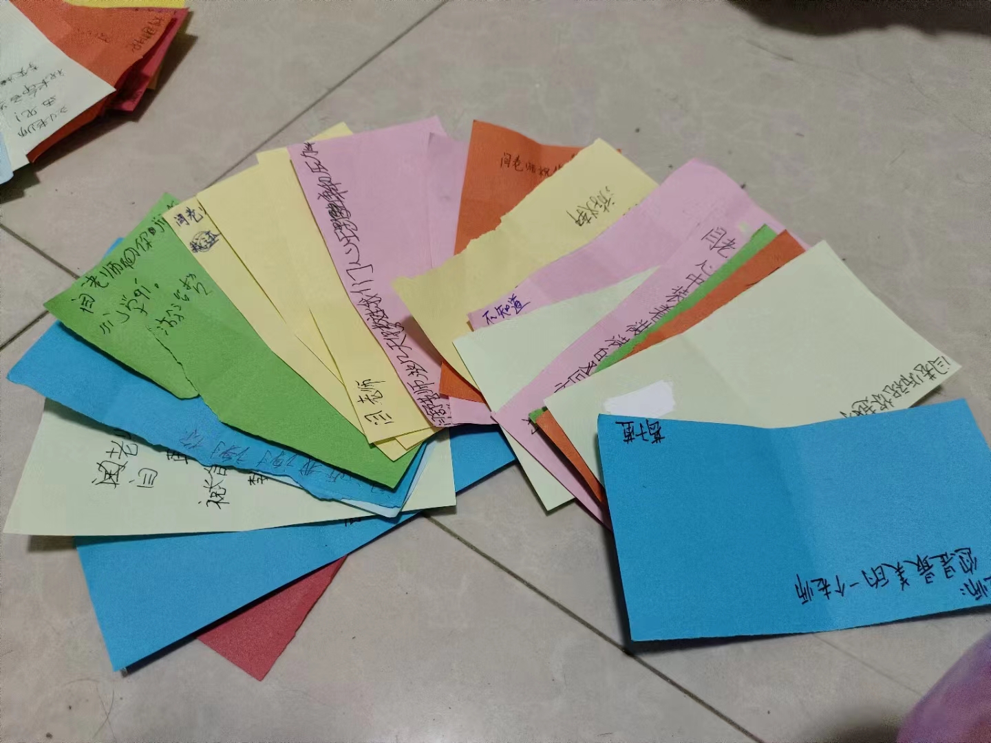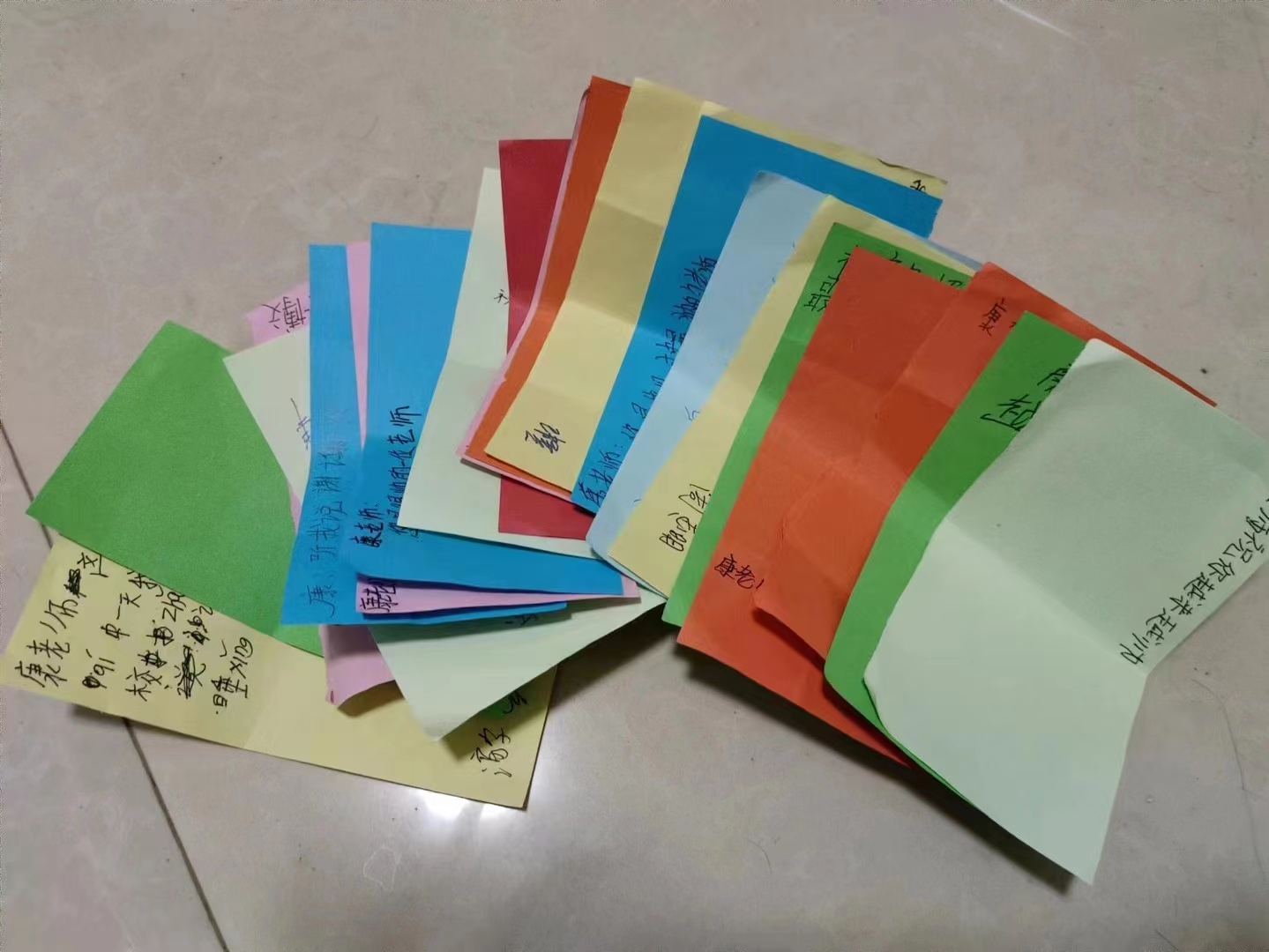 在汇报演出结束后,孩子们自发围在一起,拿起他们自带的彩纸和笔,为每一位小荷学堂的志愿者老师写下自己对老师们最真挚的祝福与感谢。孩子们的祝福语虽短,但在字里行间无不饱含着他们对老师们最真情实感的爱与祝福。正如邓雨洁同学所说,和这些可爱贴心又聪颖的小朋友们一起学习相处,也是老师们特别美好而又珍贵的回忆,而这些回忆,也将永存彼此心中!