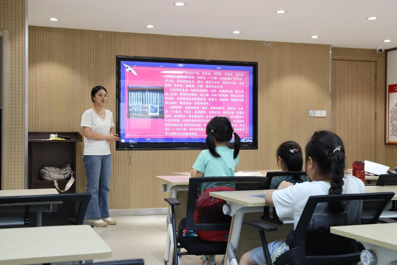 家庭档案知识课堂作为社区夏令营课程开展,是针对儿童群体的家庭档案知识科普小课堂,团队成员深入浅出地阐释了家庭档案的定义、常见实例、保护保存以及利用方法等。同时用团队原创贴纸作为奖励,激发了孩子们的兴趣通过讲解让许多孩子开始对身边的“档案”产生好奇,明白了保护家庭档案的方法和意义。