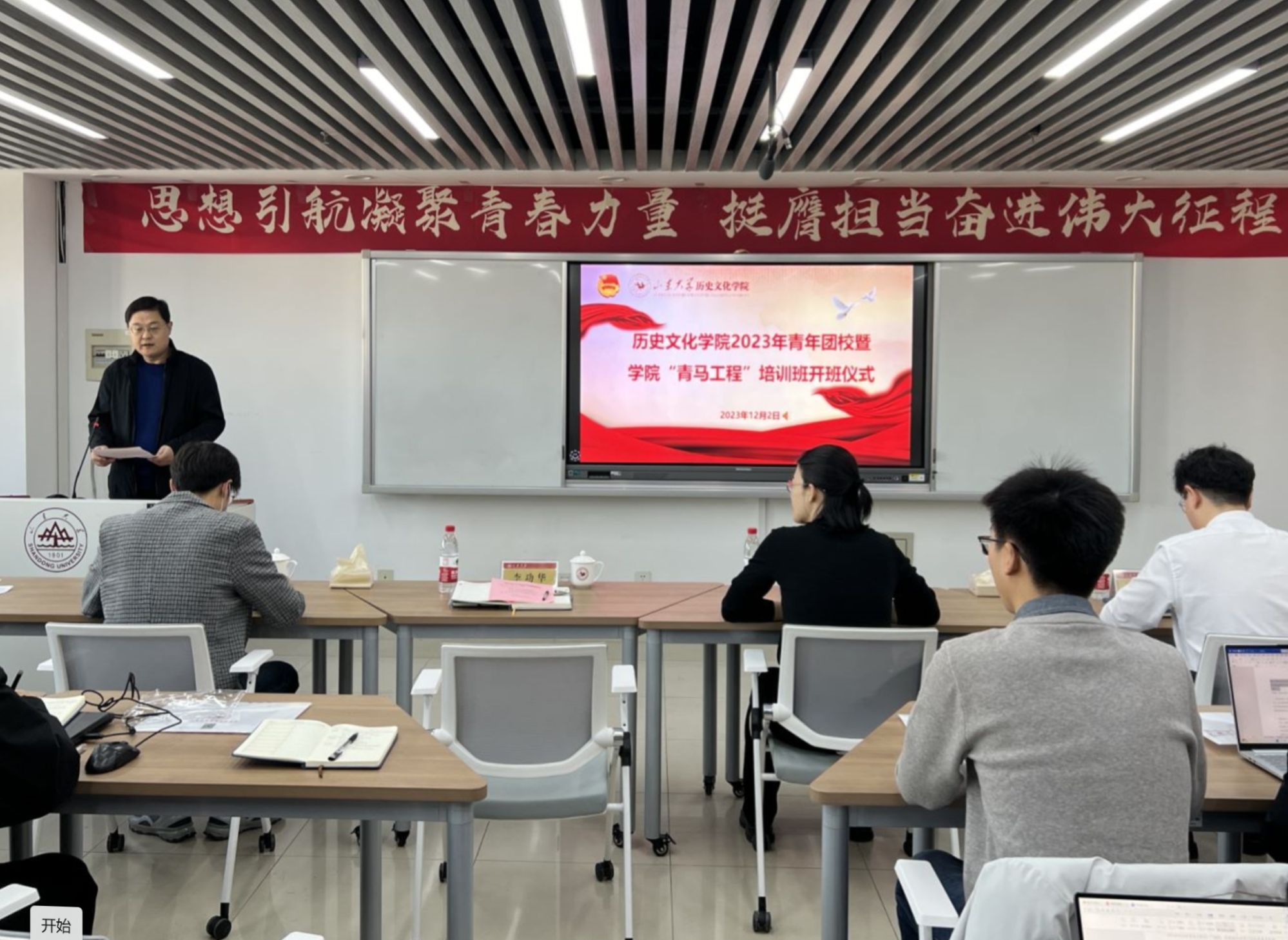 为深入学习贯彻党的二十大精神,落实好习近平总书记关于青年工作的重要思想,提高团员青年和学生骨干的政治素质和综合能力,切实加强学院共青团和学生组织建设,12月2日,历史文化学院2023年青年团校暨学院“青马工程”学生骨干培训班开班仪式在知新楼A1116举行。校团委副书记翁祥栋、历史文化学院党委副书记李功华出席开班仪式。历史文化学院历史学系第二党支部书记、副教授崔华杰作专题讲座。