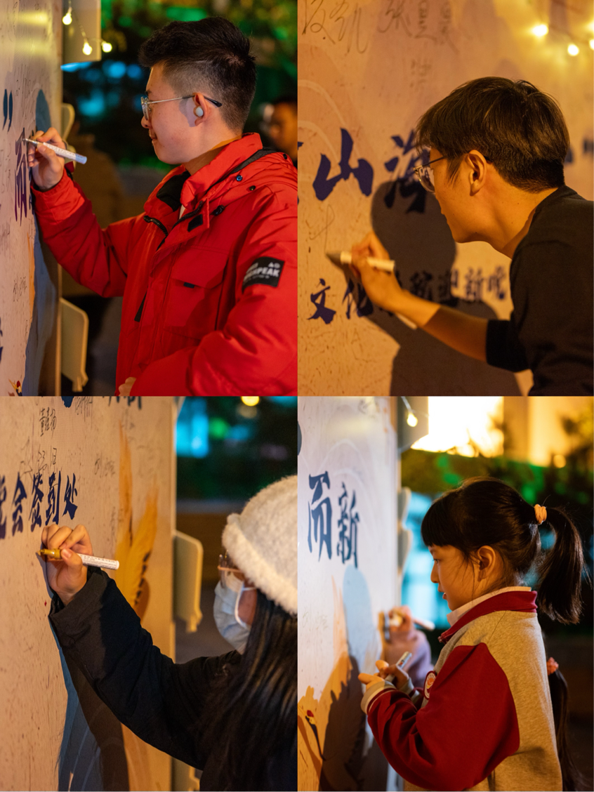 晚会前,师生在音乐厅门口签名墙处签字、合影,留下老师们的寄语和嘱托,定格同学们进入新起点的无限期待。