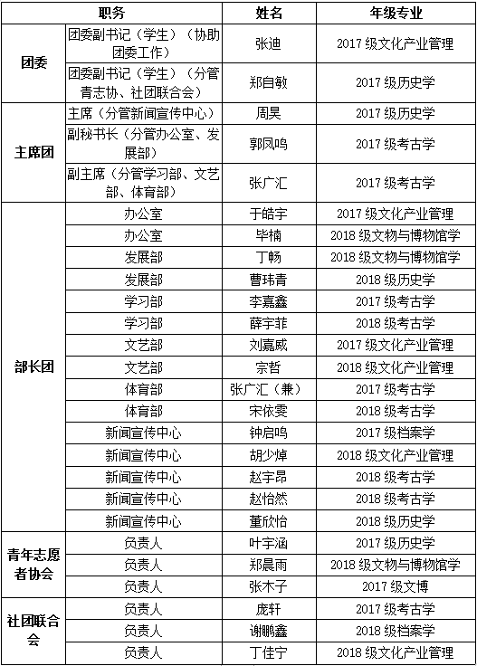 经个人申报、竞职答辩,综合考察申请人现实表现情况,拟确定2019届学生会换届名单如下,现予以公示。如有异议,请联系88363304。