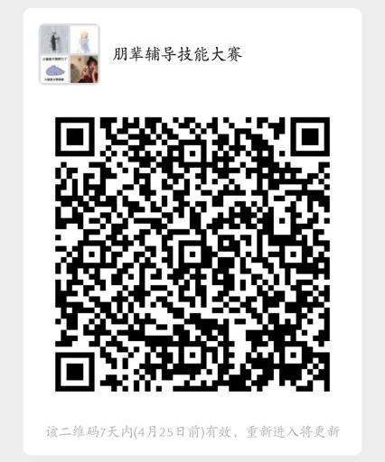 面向全校心理委员举办朋辈辅导技能大赛,以学院为单位进行现场比赛,通过个人赛、团体赛等多种形式检验心理委员前期培训成果、增强获取心理知识动力、提高班级心理工作能力,展现心理委员风采。(详见附件6)请有意向的同学务必于4月25日前实名备注加入学院比赛交流群(二维码见下),届时将择优组织一支3人队伍代表学院参加学校比赛。