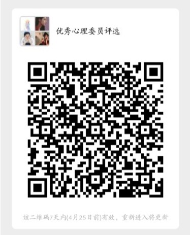 在学院心理委员队伍中树榜样、立典型,广泛传播优秀心理委员的先进经验和工作案例,激发心理委员的工作积极性和创造性,有效促进全校心理委员队伍建设。(详见附件7、附件8)请有意向申报的心理委员的同学于5月12日之前将审批表发送至lishixsgz@163.com,并实名备注加入学院活动交流群(二维码见下)。