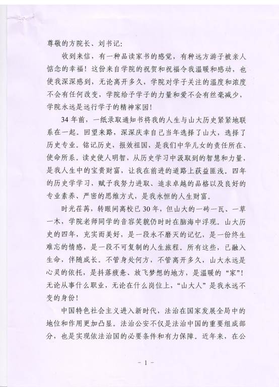 历史系85级校友华列兵致方辉院长、刘军书记的一封信