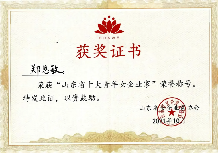 郑思敏系友获评“山东省十大青年女企业家”