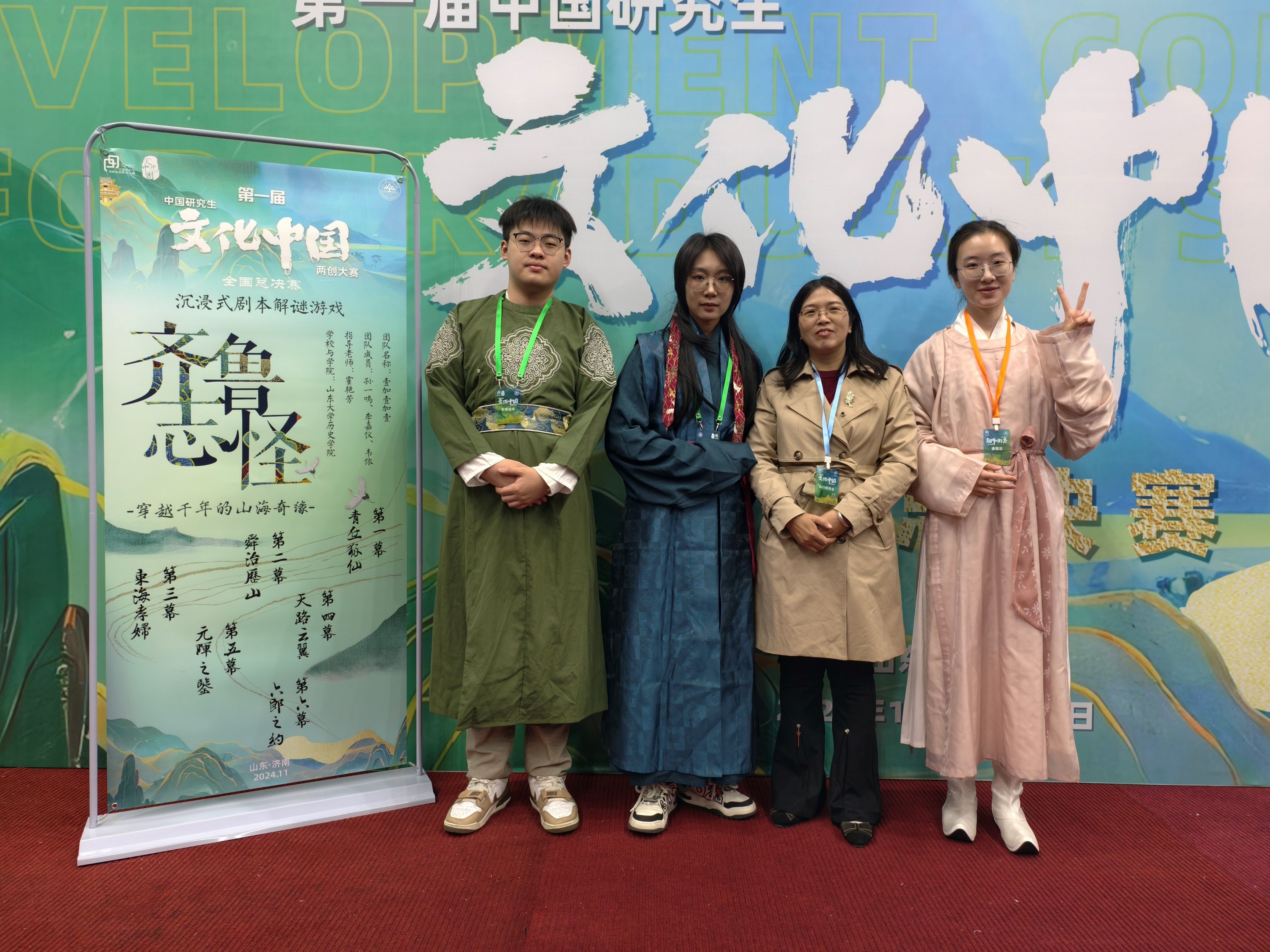 11月8日至10日,首届中国研究生“文化中国”两创大赛全国总决赛在太阳成集团tyc151cc举行。我院研究生两支队伍进入全国总决赛并斩获佳绩,其中,由曲春梅老师指导的“曾巩遗韵:创想数字曾堤”项目获全国一等奖,由霍艳芳老师指导的“齐鲁志怪:穿越千年的山海奇缘”项目获全国二等奖。
