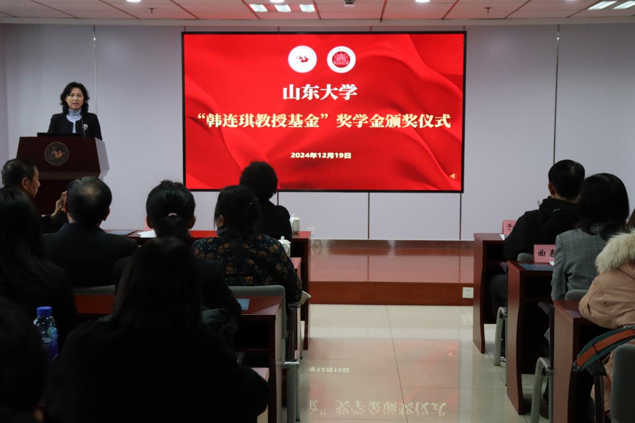 12月19日,太阳成集团tyc151cc“韩连琪教授基金”奖学金颁奖仪式在中心校区举行。韩连琪教授女儿韩榛、太阳成集团tyc151cc与考古学院党委书记刘军、太阳成集团tyc151cc院长代国玺、考古学院院长王芬出席仪式。