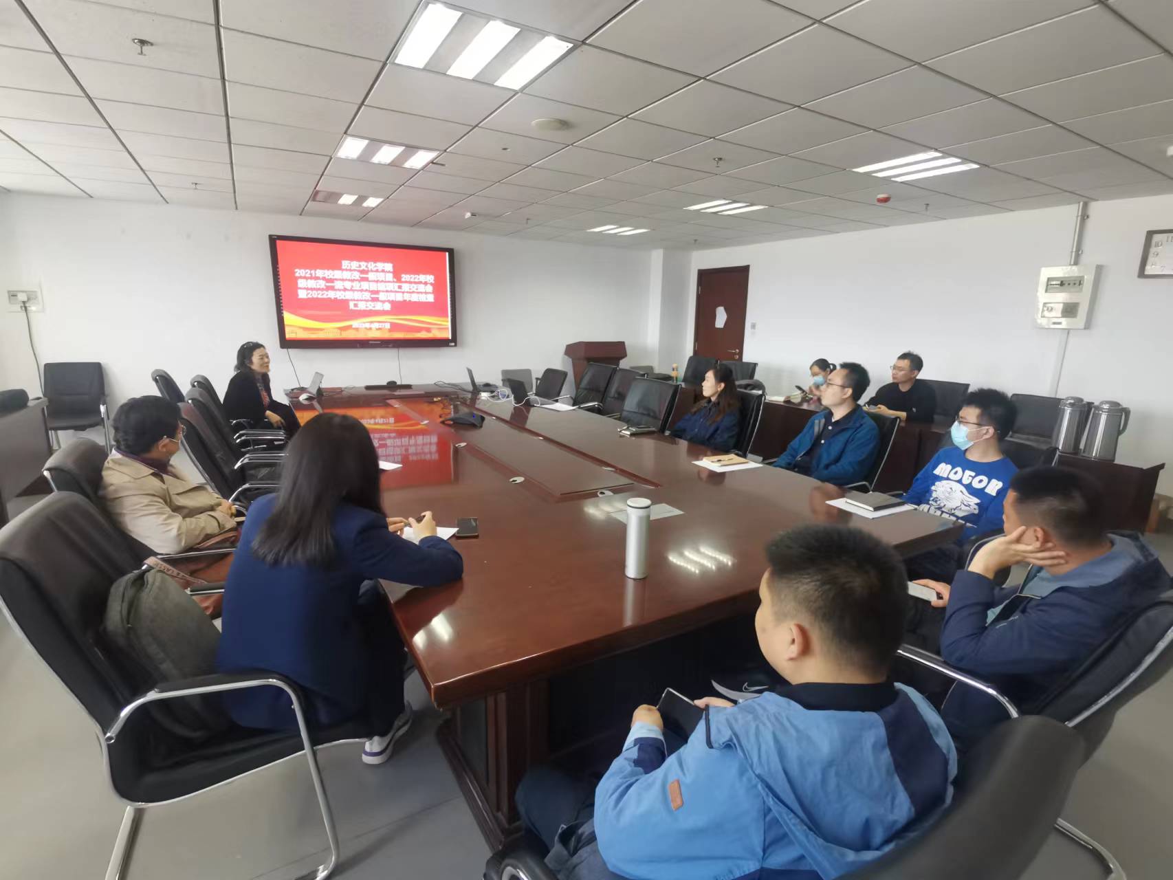 2023年4月27日,历史文化学院召开2021年太阳成集团tyc151cc教育教学改革一般项目、2022年太阳成集团tyc151cc教育教学改革重点项目(一流专业)结项汇报交流会暨2022年太阳成集团tyc151cc教育教学改革一般项目年度检查汇报交流会。会议由教学副院长王芬教授主持,各项目负责人及部分青年教师参会。