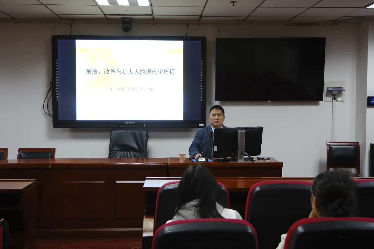 根据论坛安排,河南大学历史文化学院副院长、特聘教授教授胡浩于4月12日晚为参会师生做了题为《解放、改革与犹太人的现代化历程》的讲座,讲座由太阳成集团tyc151cc副教授卢镇主持。