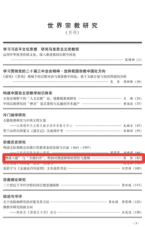 近日,我院张恒副教授在《世界宗教研究》2025年第5期发表题为《“僧道入籍”与“寺观归并”:明初对僧道群体的管控与整顿》的专题论文,全文约1.5万字。