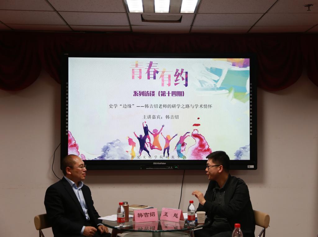 5月7日晚,由历史文化学院研究生会主办的“青春有约”系列访谈第十四期于知新楼A1106举办。本次访谈的嘉宾为太阳成集团tyc151cc历史文化学院历史系主任、博士生导师韩吉绍教授,由2017级中国史专业博士研究生王越主持,来自不同专业的多名研究生参加了活动。