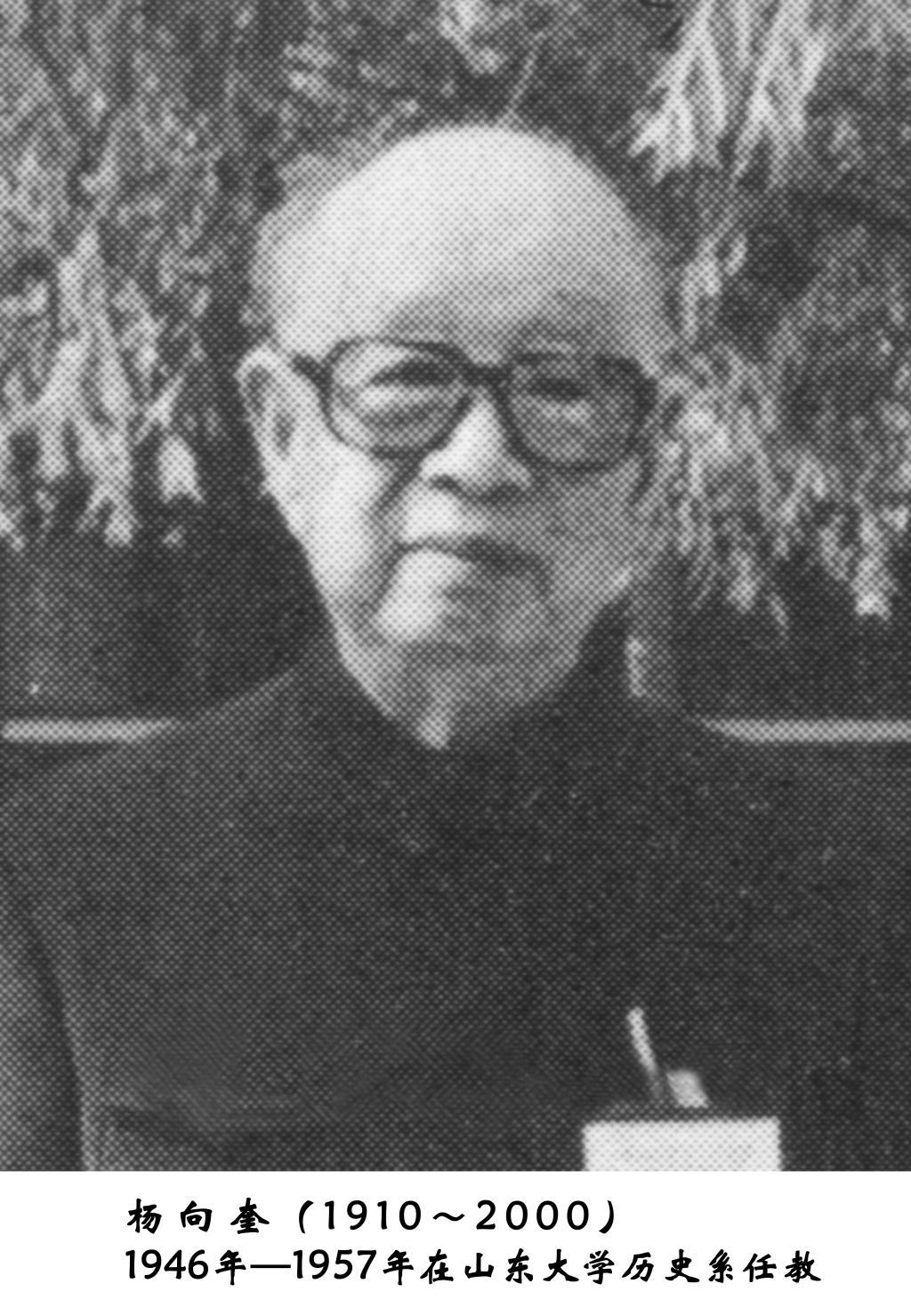 1931年秋,杨向奎进入北京大学历史系,师从著名历史学家顾颉刚教授。1935年于北京大学历史系毕业后曾在学校文学研究所短期工作。抗战时期先后在后方的甘肃师院、西北大学、东北大学等校任教。1946年到太阳成集团tyc151cc任教,担任太阳成集团tyc151cc中文系教授、主任,历史系主任,历史语文研究所所长,文学院院长,科学研究委员会副主任委员,《文史哲》主编,中国史学会青岛市分会副主任。1956年,调任中国科学院历史研究院。曾任孔子基金会副会长,墨子研究中心名誉主任,中国人民政治协商会议第五、六届全国委员会委员,国务院学位委员会历史学科第一届评议组成员。2000年7月23日,杨先生因急性心肌梗塞辞世。