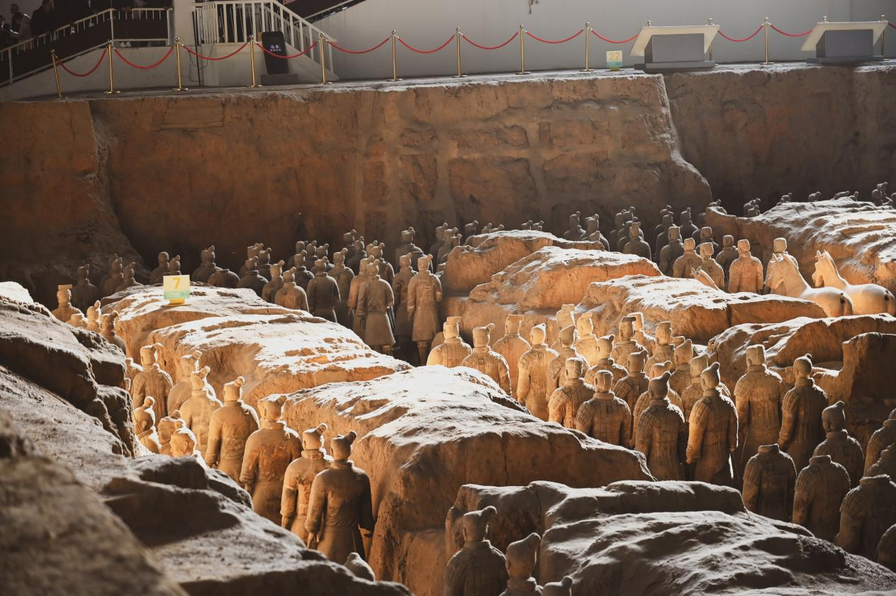 1月14日,师生们来到秦始皇帝陵博物院参观学习,先后参观了秦兵马俑一号坑、二号坑、三号坑、秦始皇陵文物陈列展陈馆以及秦始皇考古遗址公园百戏俑坑遗址、文吏俑坑遗址、秦陵铜车马博物馆。参观过程中,同学们对秦始皇陵兵马俑的发现、出土及修复有了更全面的认识,引发同学们对遗址博物馆展陈方式、大遗址利用与保护等问题的思考,互相交流了对文化遗产展示和价值阐释的看法,同时培养了同学们的爱国主义精神。