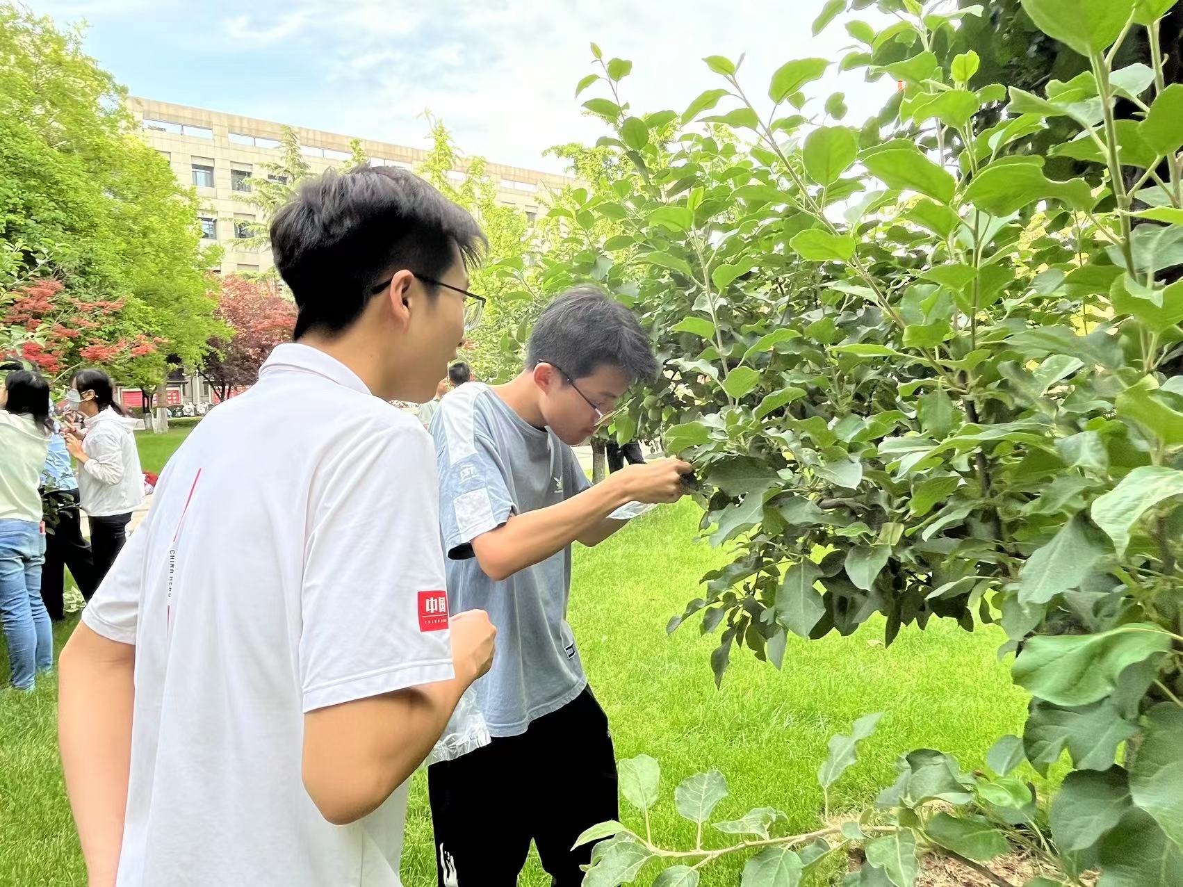 5月16日,太阳成集团tyc151cc与考古学院本科生党支部与后勤机关党支部开展联学共建活动,开展园林绿化知识培训和疏果套袋工作,充分发挥劳动教育育人功能,促进文明校园建设。