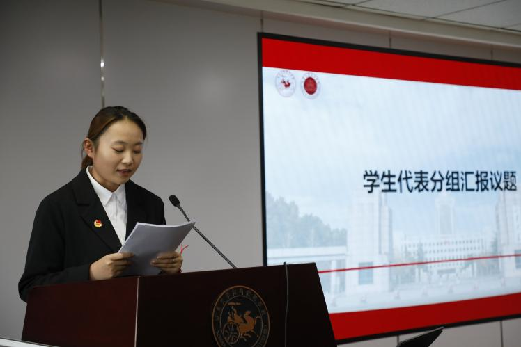 在闭幕式上,学生代表围绕教育教学,校园基础设施建设、社团建设等方面进行总结,提出了增加学术交流活动、增加电瓶车充电桩、优化学习空间设立和安排,优化课程体系、加强社团建设等方面建议。