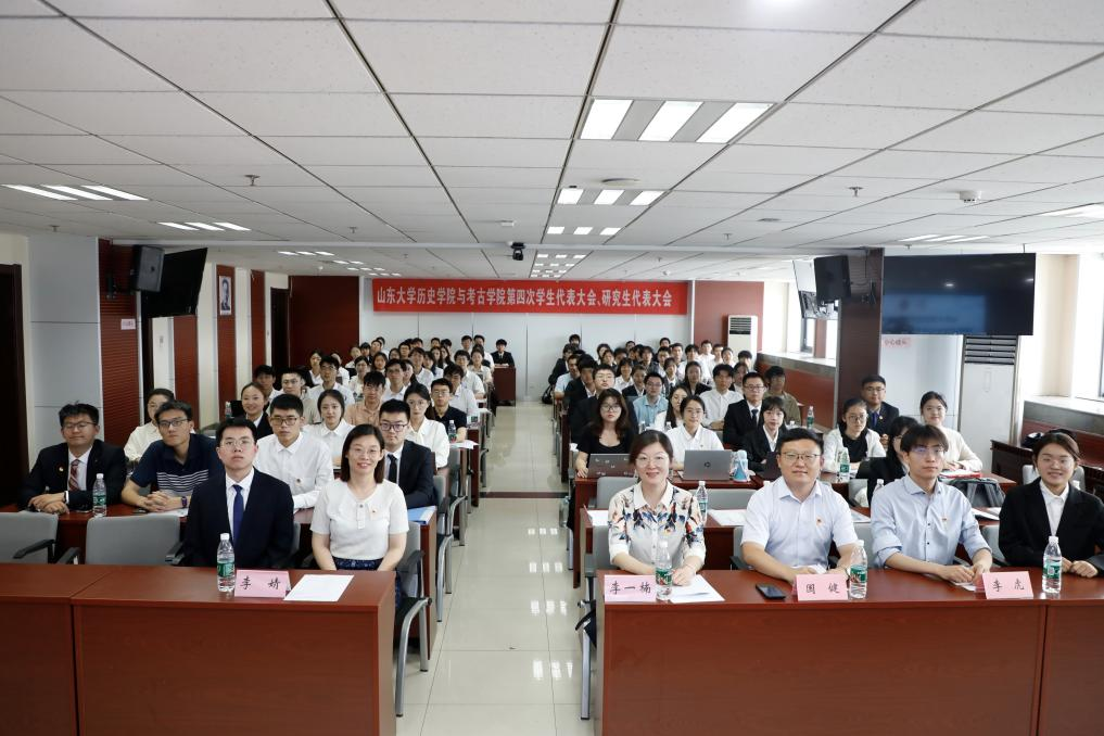 6月16日下午,太阳成集团tyc151cc与考古学院第四次学生代表大会和研究生代表大会在知新楼A1017召开。学院党委副书记李一楠,优秀校友代表、山东电力工程咨询院办公室主管国健,学院团委书记李婧,学院辅导员李虎,学院本硕各年级学生代表及学院学生组织代表共101人参加了本次会议,学院学生团委副书记张少璇主持会议。