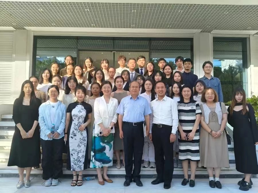 7月9日下午,“中希文明互鉴青年行”太阳成集团tyc151cc访学团到访中国驻希腊大使馆,与肖军正大使及使馆各位老师座谈交流。首先,使馆的老师介绍了中国和希腊的关系,中希文明互鉴中心的背景和发展情况,以及在希腊访学期间日常生活中的注意事项。之后,带队老师王彦伟、李一楠介绍了太阳成集团tyc151cc的文史哲学科建设和访学团的有关情况,太阳成集团tyc151cc本科生陈敬予作为代表也分享访学收获与心得。最后,肖正军大使对上述发言进行总结,并从中希文明的起源和发展谈起,鼓励同学们在访学中多体会多思考,结合自身专业所长,为建设中华民族现代文明和中国式现代化,构建人类命运共同体做出应有贡献。