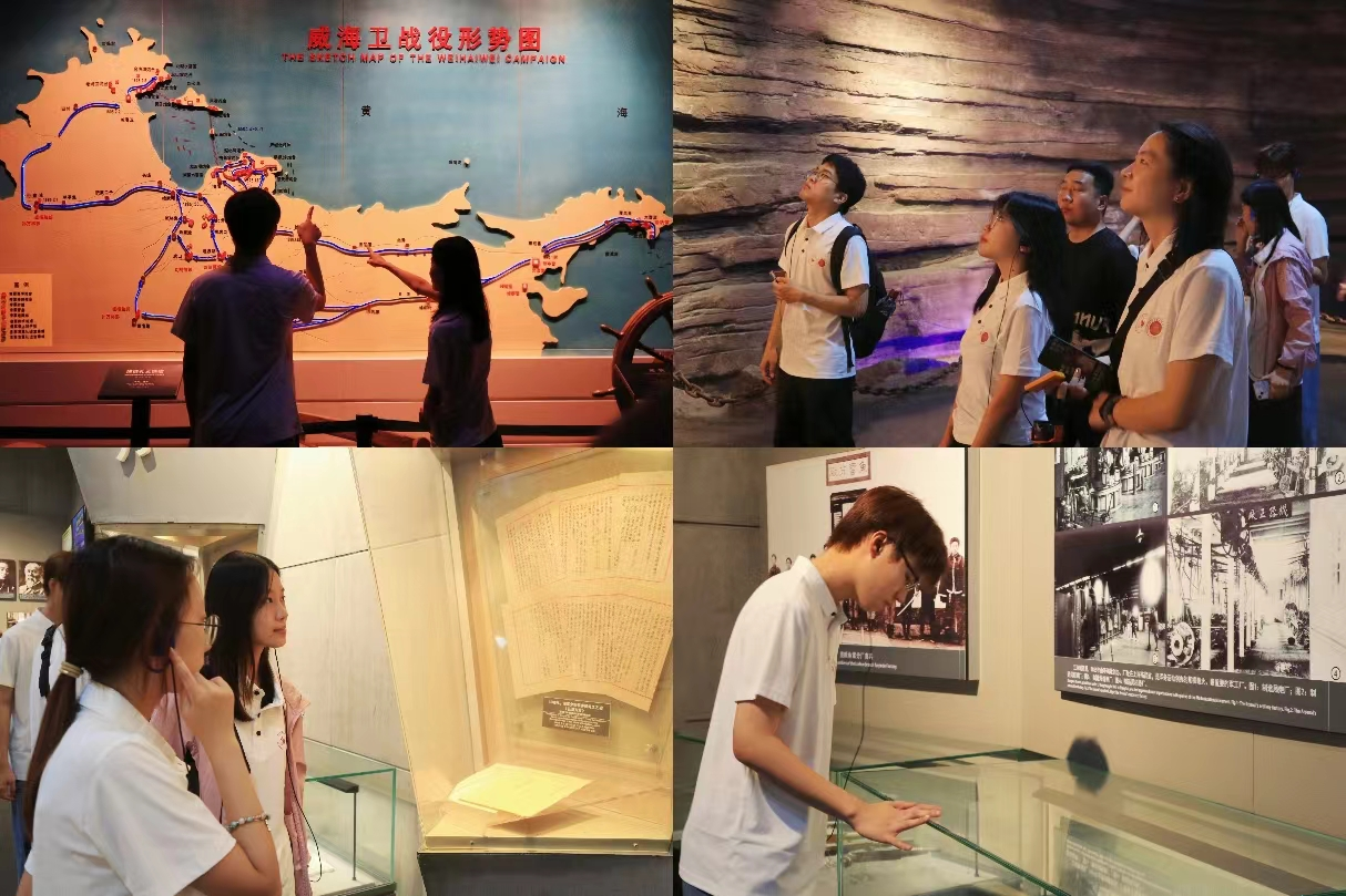 重回革命海岛,追溯甲午国殇之史。7月8日-9日,团队成员走进“大思政课”实践教学基地刘公岛,围绕中国甲午战争博物馆陈列馆、定远舰、东泓炮台、海军公所、黄岛炮台等遗址文物、博物馆展陈进行参观调研,在甲午警示钟前集体沉思,在“国帜三易”遗址对“历史三问”进行庄严宣誓,从历史中吸取经验教训,在现实中居安思危,进一步深化了当代青年对历史的思考和对先辈们奉献精神的无限景仰,浓厚爱国热情,厚植家国情怀。