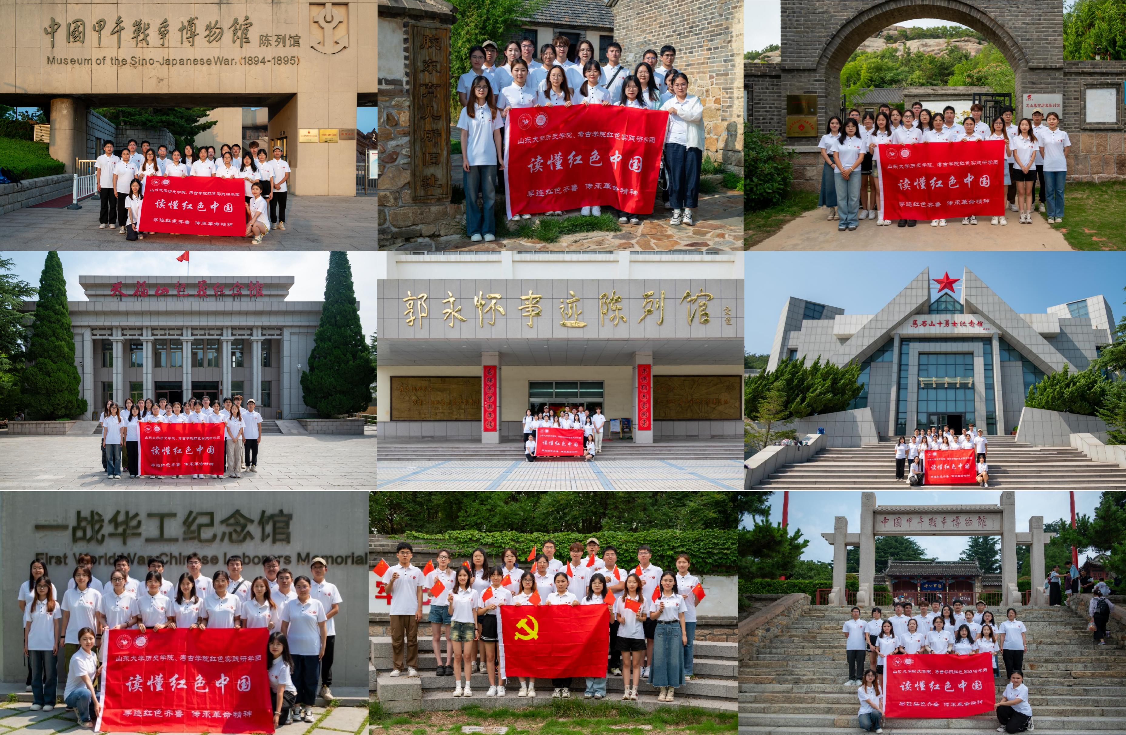 回眸历史遗存,心系祖国未来之兴。7月12日-13日,团队成员在威海一战华工纪念馆和收回威海卫纪念塔开展实践研学,同学们纷纷表示要继承先辈遗志,接好时代的接力棒,勇立时代潮头,矢志砥砺奋斗。结合课程开展,团队形成微电影、思政课短视频、调研报告、研学手册、75件红色文物图文展等丰富实践成果,与校内外新闻网站,当地融媒体平台等形成宣传联动,扩大了活动影响力、吸引力。