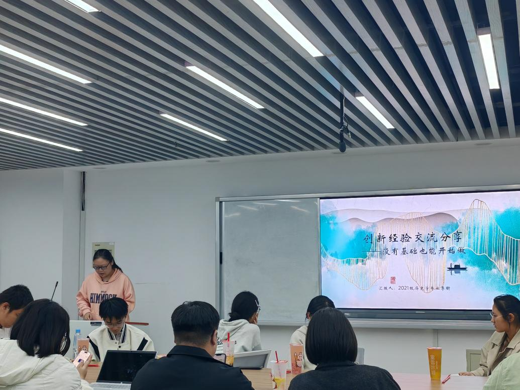 李昕同学作题为《创新经验交流分享——没有基础也能开始做》的分享,她着重解释了相关赛事的背景、意义以及相关赛道的设置,同时强调做好大创项目的关键在于想好选题,好的选题是成功的一半,她鼓励同学们在参与创新实践赛事时要学会合理寻求帮助,掌握查找和整理资料的技能,并对如何填好申报书进行了全面详细的讲解。